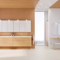 De sierlijke lijnen zijn doorgevoerd in de exclusieve wastafels en werkbladen, die eenvoudig aangepast kunnen worden, zodat ze perfect in uw badkamer passen. De lijn omvat ook een ruime selectie extra kasten, bijpassende spiegels en verschillende soorten verlichting, die het eenvoudig en leuk maken om een exclusieve badkamer in te richten, ongeacht formaat en vorm.