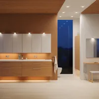 Een exclusieve badkamer is een plek waar het licht prettig moet zijn; ongeacht of u zich u klaarmaakt voor de nacht of u zich wilt opmaken. Met pendellampen, plafondlampen, verlichting in spiegels en spiegelkasten, alsmede indirecte verlichting in en onder lades en kasten, krijgt u 24 uur per dag het beste licht voor alle activiteiten in uw badkamer. Met onze lampen kunt u een unieke samenhang creëren in het interieur van uw badkamer en alle lampen hebben het IP44 keurmerk voor gebruik in natte ruimtes.