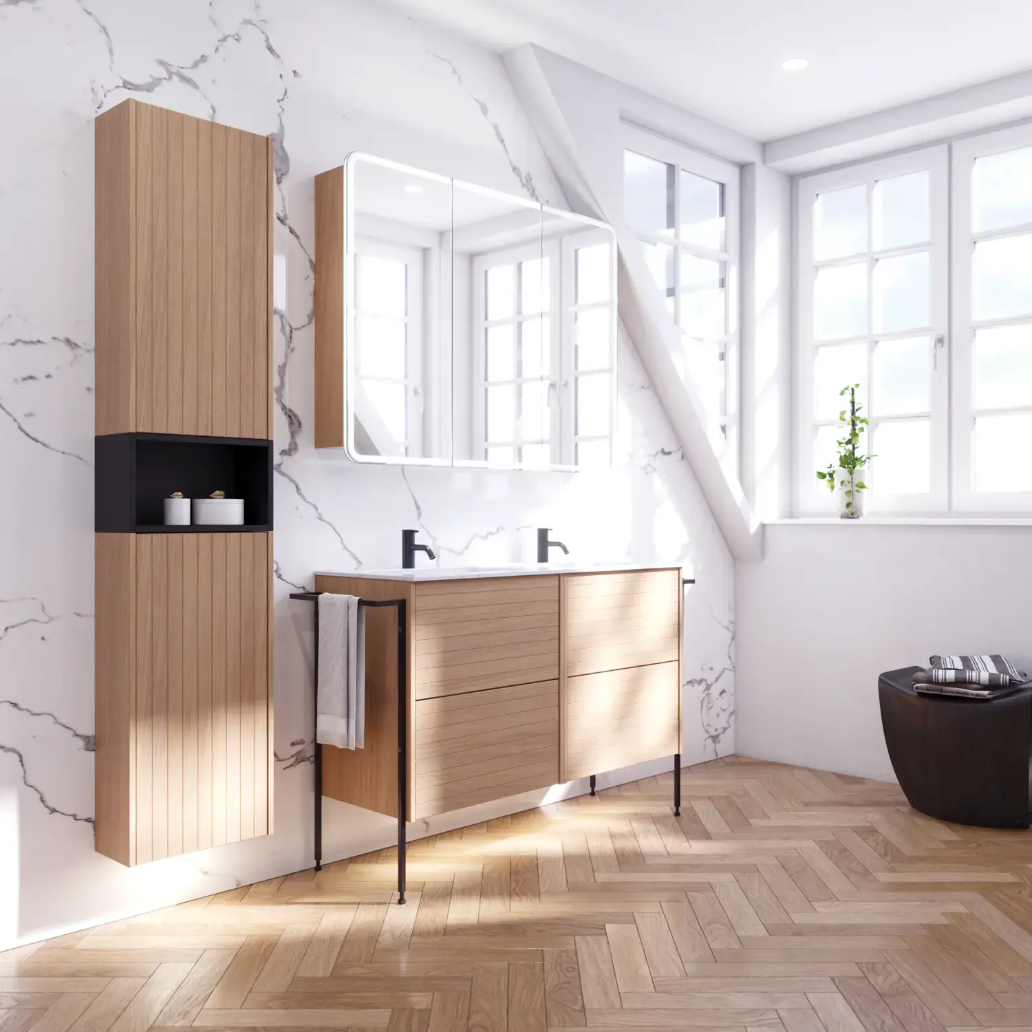 Bij Dansani combineren we mooi Deens design met intelligente functionaliteit om een badkamer te creƫren die even praktisch als uitnodigend is. Wij geloven dat de badkamer de belangrijkste ruimte in huis is - een plek waar je je dag begint en eindigt. Daarom ontwerpen we badkamermeubels die je dagelijks leven makkelijker maken en tegelijkertijd een gevoel van rust en welzijn creƫren.