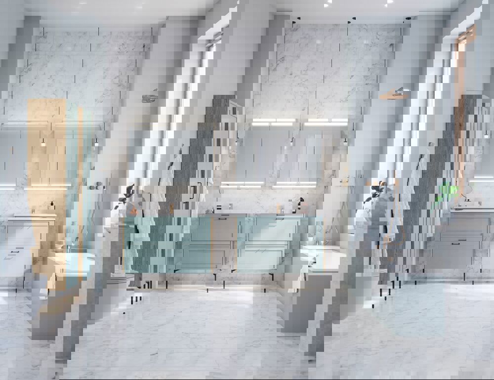 Denk creatief na over de plaatsing van je badkamermeubels om de ruimte optimaal te benutten.