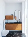 Een porseleinen wastafel is een populaire keuze, omdat het zowel duurzaam als gemakkelijk schoon te maken is. Als je een op maat gemaakte uitstraling wilt, kun je kiezen voor een solid surface-wastafel of een wastafel van Silestone, die beide op maat gemaakt kunnen worden. Hierdoor is een afwijkende maat of een nisoplossing nooit een probleem bij het kopen van je badkamermeubels bij Dansani. Solid surface en Silestone bieden de mogelijkheid om een elegante en moderne badkamer te creëren. Combineer het met een wastafelonderkast met wastafel die perfect bij jouw stijl past.