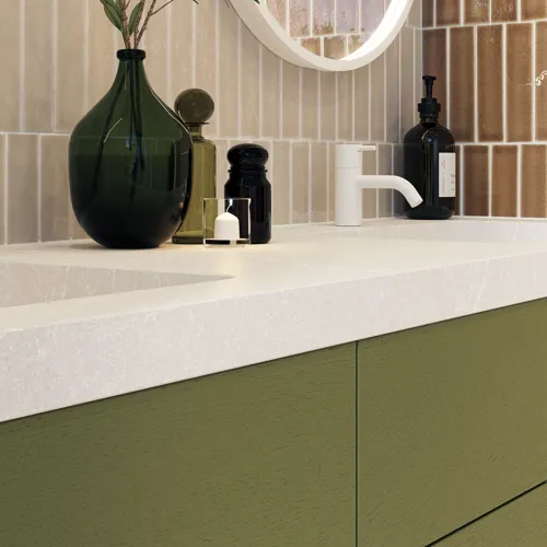 Alle houten elementen in Calidris zijn gefineerd met massieve hoekenranden van eiken fineer. In vergelijking met massief hout zorgt eiken fineer voor een meer egale kwaliteit met mooiere nerven en een fraaier verloop van structuren. Daarnaast is de houten plaat stabiel en werkt deze niet. Massief hout is een levend materiaal, dat als gevolg van luchtvochtigheid en temperatuur zal werken. Om massief hout stabieler te maken, worden veel smalle stroken hout op elkaar gelijmd.