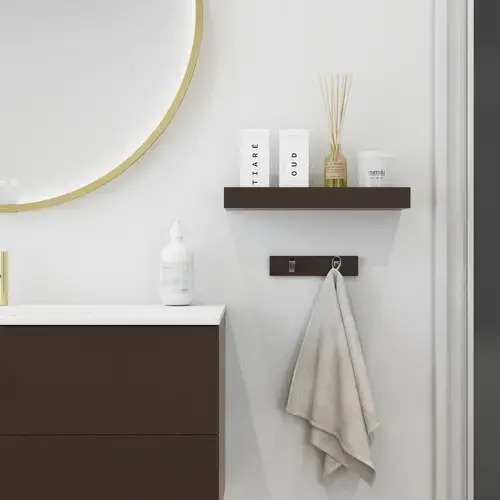 Er toilettet i vejen for skuffens udtræk – ja så kombineres skuffer i et elegant og let design med åben fralægningsplads til for eksempel håndklæder eller vasketøj.