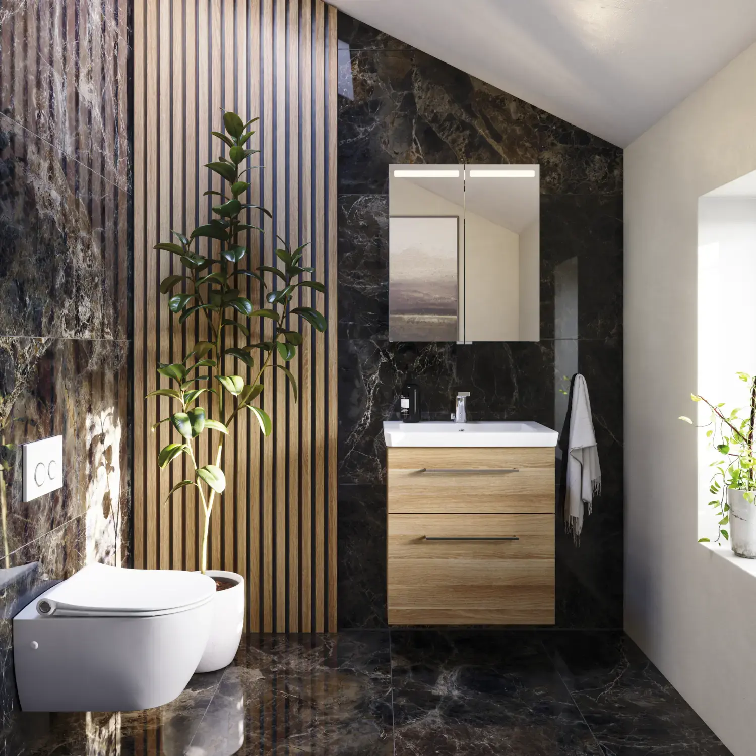 Deze meubels creëren meer vloeroppervlak en geven de ruimte een lichtere en ruimere uitstraling. Series zoals Dansani Mido+ en Dansani Luna bieden veel wandgemonteerde modellen die perfect zijn voor kleine badkamers.