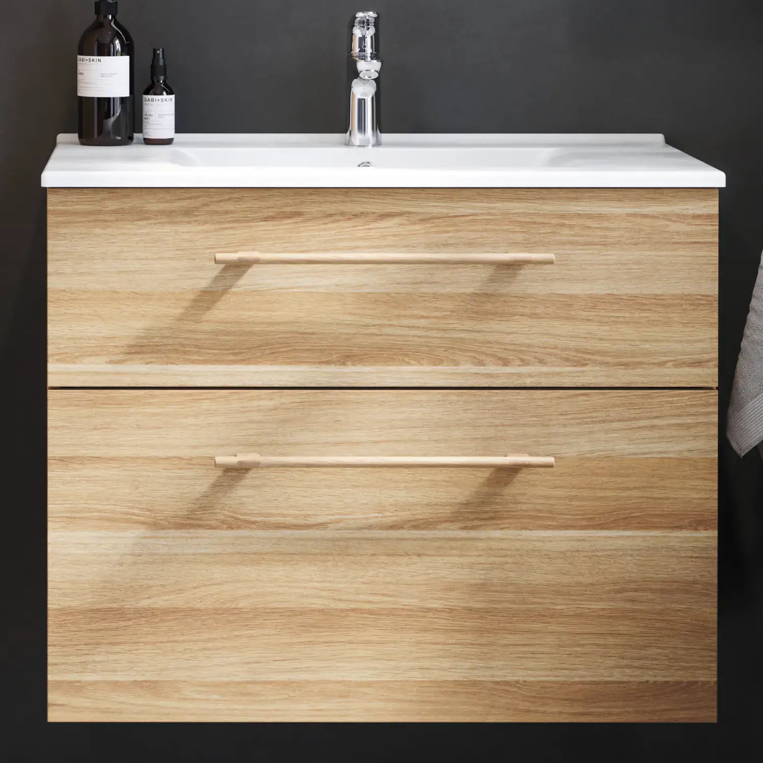 Bij Wenskleur op wastafelmeubelen wordt de greep in dezelfde kleur gekleurd