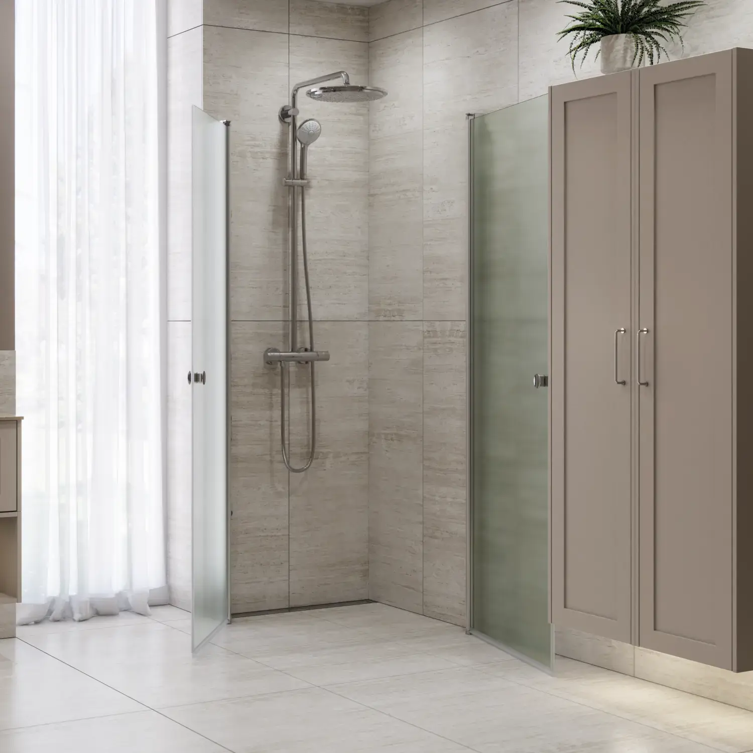 Een of twee douchedeuren worden tussen twee muren geplaatst.