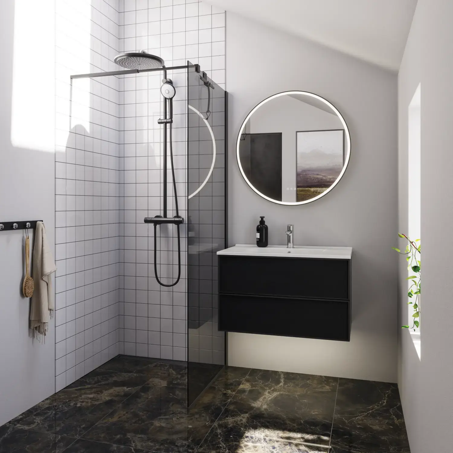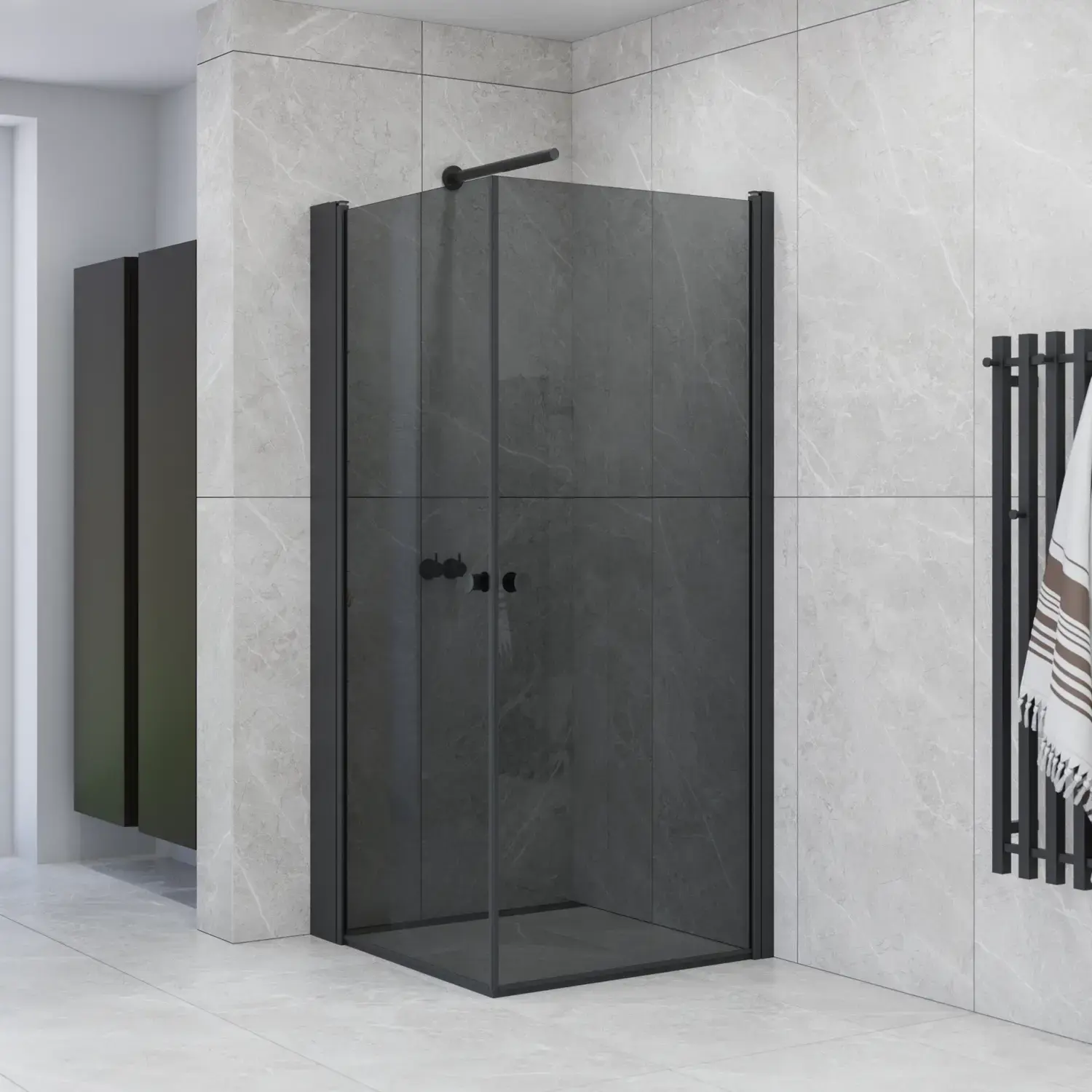 Met getint, zwart glas krijg je een douchewand met een exclusieve en opvallende uitstraling, die de badkamer diepte en karakter geeft. Het glas vermindert inkijk en biedt meer privacy, terwijl het toch het licht mooi in de ruimte laat spelen.