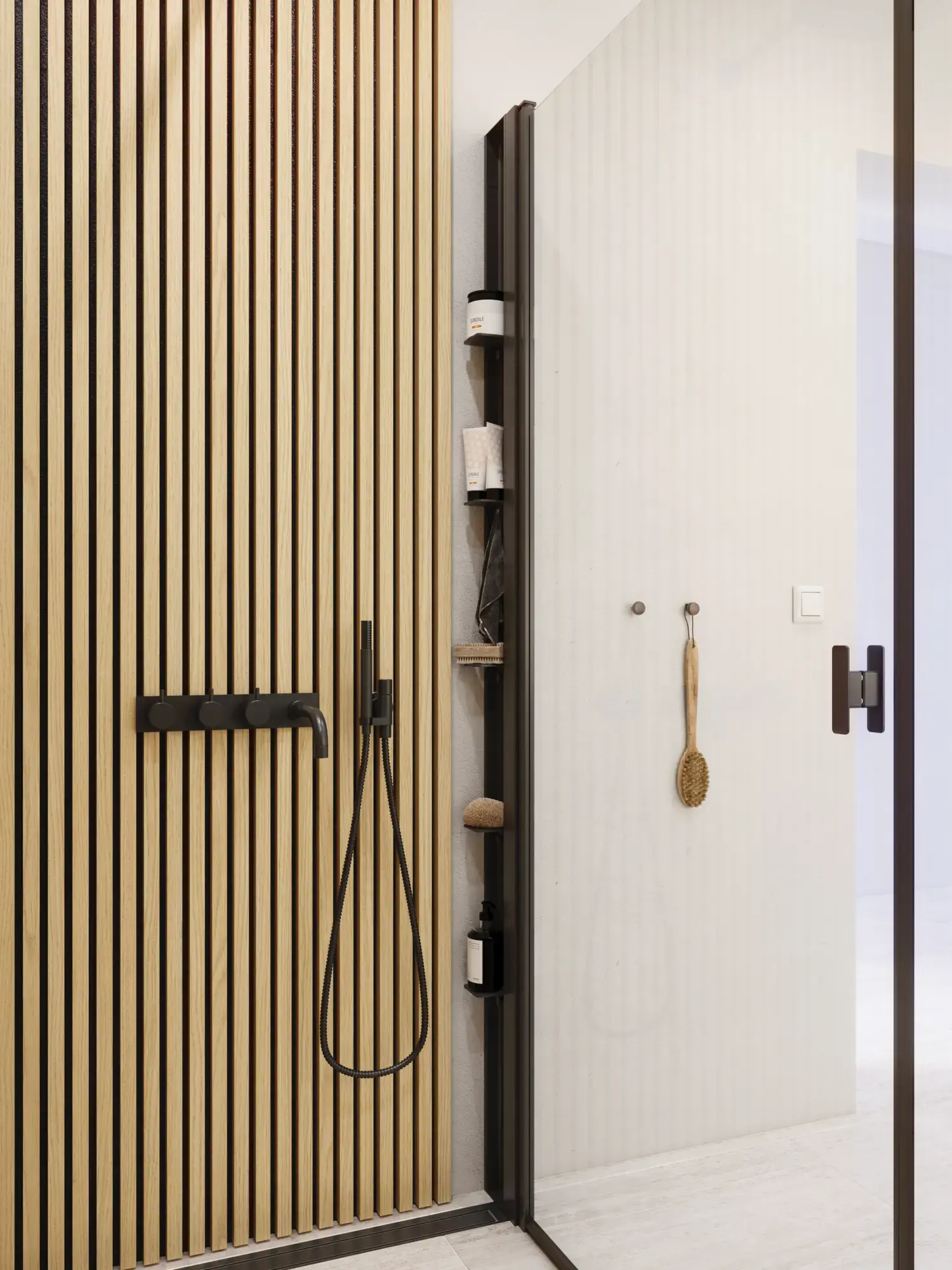 Schuift opzij, zodat de deur geen ruimte inneemt in de badkamer.