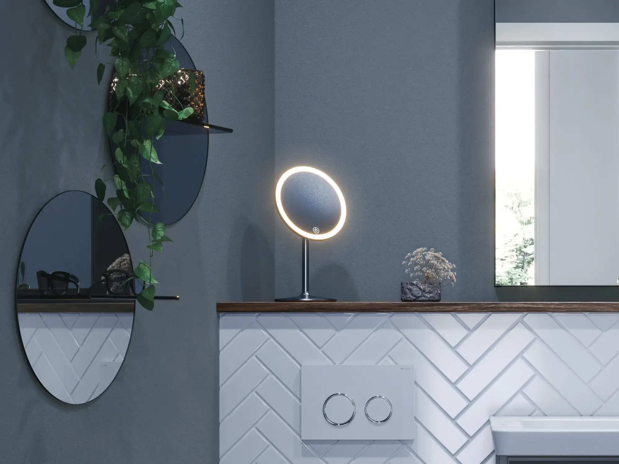 Met een elegante en functionele make-up spiegel met verlichting kunt u alle details in het gezicht heel goed zien bij het opmaken, het epileren van uw wenkbrauwen, etc.
