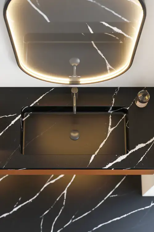 Als u graag veel werkruimte wilt, zodat de spullen van het hele gezin een plek kunnen krijgen, dan kunt u kiezen voor een asymmetrische wastafel. Wij bieden veel mogelijkheden om aan uw wensen tegemoet te komen en we hebben asymmetrische wastafels in verschillende designs en materialen. U kunt kiezen uit verschillende standaardoplossingen of een van onze maatwerkoplossingen, die perfect in uw badkamer passen, ongeacht grootte en vorm.