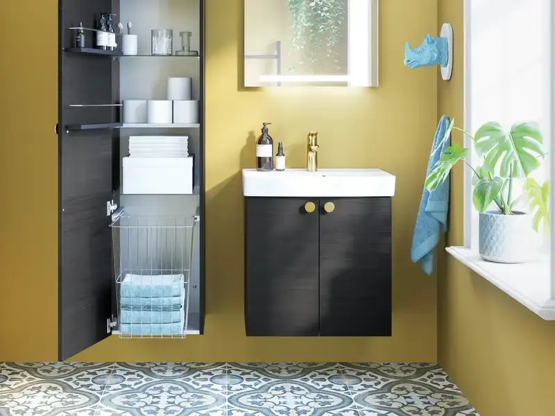 Het kiezen van de juiste wastafel wanneer de ruimte beperkt is, is cruciaal. Het moet zo min mogelijk ruimte in de badkamer in nemen, maar tegelijkertijd functioneel en gemakkelijk te onderhouden zijn. Kies je voor een ondiepe wastafel met een diepe kom, dan krijg je de ruimte om je handen goed te wassen zonder dat er water over de vloer komt. Bij het kiezen van je badmeubel is het raadzaam om de maximaal beschikbare muurruimte te gebruiken in plaats van een model dat mogelijk alleen is ontworpen om de sifon of het leidingwerk te verbergen. Zelfs 30 centimeter extra biedt voldoende ruimte voor het opbergen van badkamerartikelen zoals wc-rollen en schoonmaakproducten.