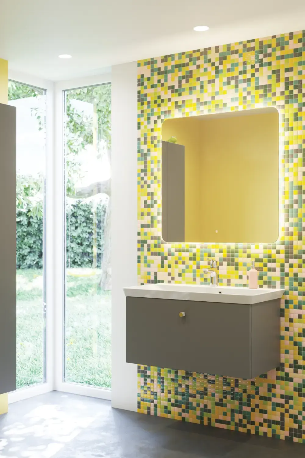 - Decoreer met verschillende tegels en oppervlakken