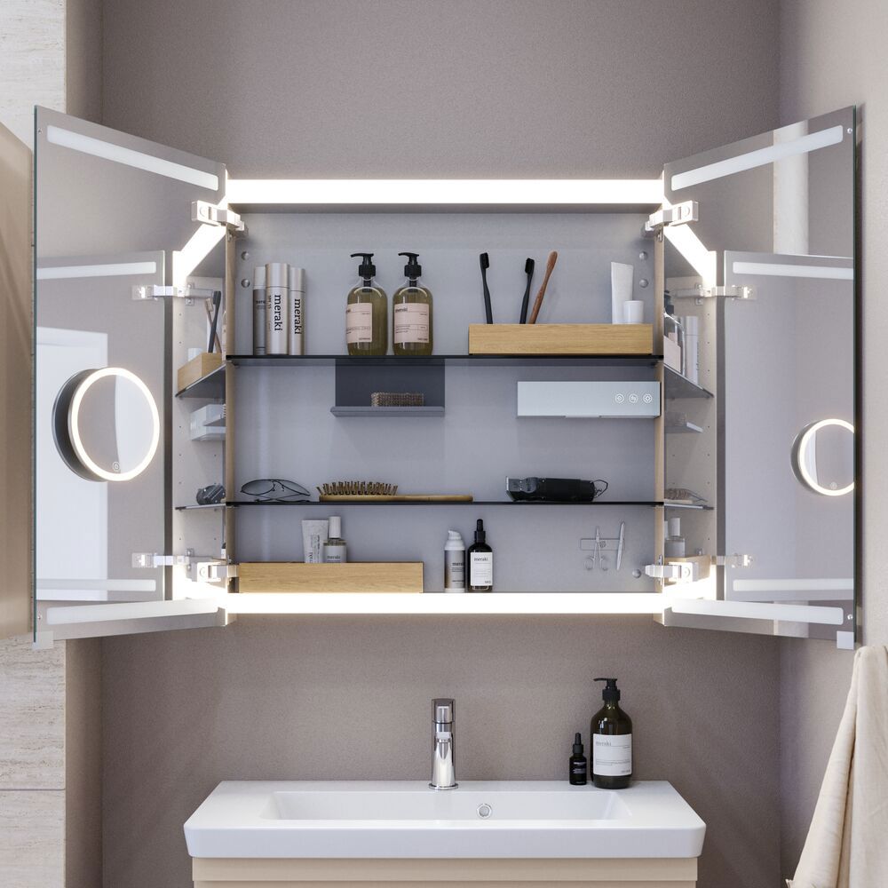 Om zowel functionaliteit als sfeer in je badkamer te optimaliseren, kun je verlichting toevoegen onder de wastafelonderkast of in de lades voor beter overzicht en een gezellige ambiance. Verlichting onder je wastafelonderkast biedt ook goede nachtverlichting, zodat je niet het hele badkamerlicht hoeft aan te doen als je 's nachts opstaat. Bij ons kun je ook praktische stopcontacten in de lades krijgen, zodat je je elektrische tandenborstel, föhn of scheerapparaat direct in de lade kunt aansluiten – een handige en slimme oplossing om alles georganiseerd te houden. Dit draagt bij aan rust in de badkamer, omdat spullen niet rondzwerven en het aanzicht verstoren.