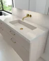 De Unique wastafel heeft een strak en onderscheidend ontwerp dat de aandacht trekt, en het exclusieve Silestone® natuurlijke materiaal voegt een vleugje luxe en elegantie toe aan je badkamer die buiten het gewone valt. Elke wastafel is uniek en wordt aan jou en je wensen aangepast wat betreft grootte, aantal waskommen en hun plaatsing. De diepe en ruime wastafel is verkrijgbaar in 2 breedtes.
