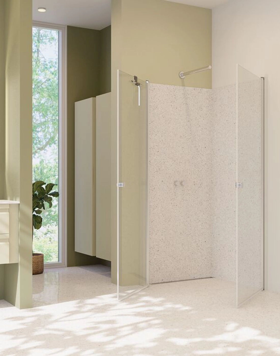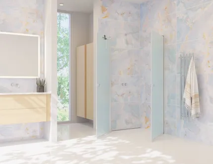 De draaideuren brengen zowel elegantie als functionaliteit in je badkamer. De deuren zijn uiterst praktisch en gebruiksvriendelijk, want ze kunnen zowel naar binnen als naar buiten worden geopend. Zo maak je ruimte vrij in je badkamer als de douche niet in gebruik is. De draaideuren openen en sluiten gemakkelijk en geruisloos op duurzame scharnieren met liftsysteem en zorgen voor een probleemloze toegang tot de douche. Tegelijkertijd vormen ze een effectief scherm om water binnen de doucheruimte te houden en de rest van de badkamer droog en schoon te houden. Het geharde glas in de deuren is behandeld met EasyCare, voor jarenlange eenvoudige reiniging.