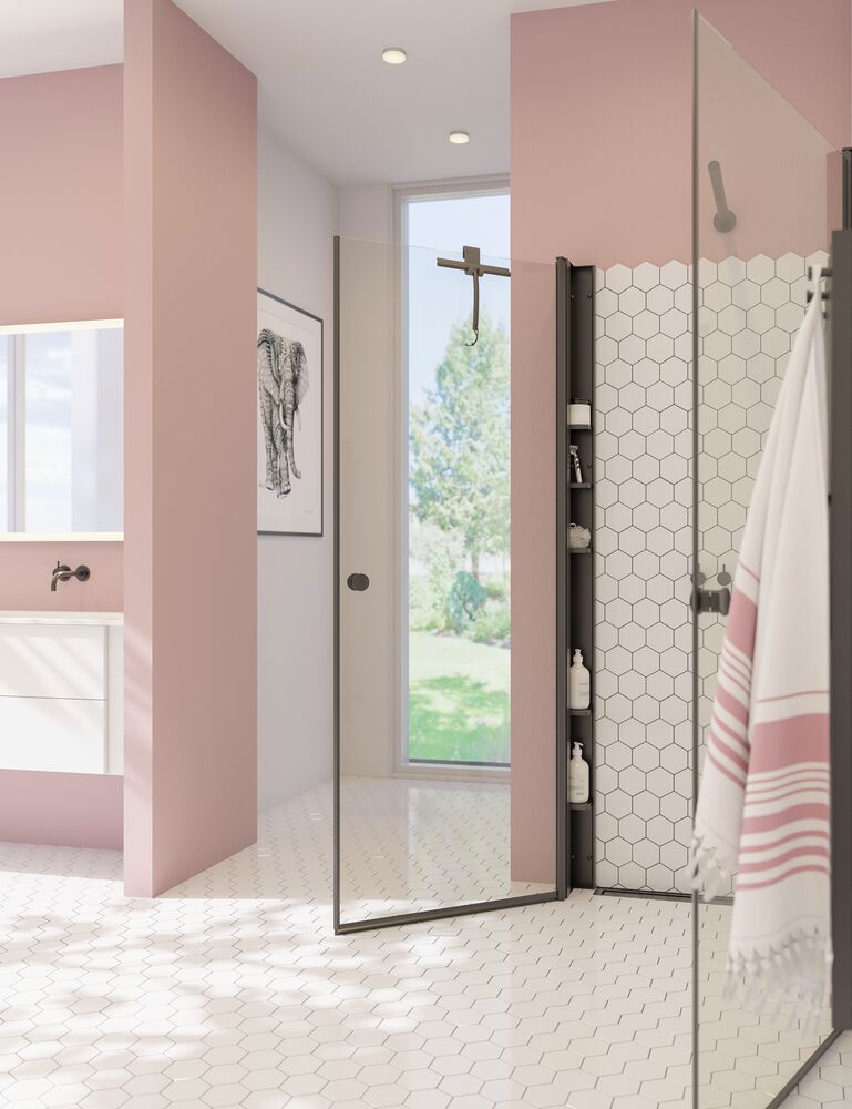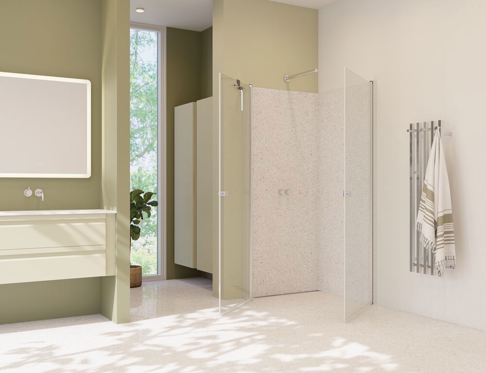 De draaideuren brengen zowel elegantie als functionaliteit in je badkamer. De deuren zijn uiterst praktisch en gebruiksvriendelijk, want ze kunnen zowel naar binnen als naar buiten worden geopend. Zo maak je ruimte vrij in je badkamer als de douche niet in gebruik is. De draaideuren openen en sluiten gemakkelijk en geruisloos op duurzame scharnieren met liftsysteem en zorgen voor een probleemloze toegang tot de douche. Tegelijkertijd vormen ze een effectief scherm om water binnen de doucheruimte te houden en de rest van de badkamer droog en schoon te houden. Het geharde glas in de deuren is behandeld met EasyCare, voor jarenlange eenvoudige reiniging.