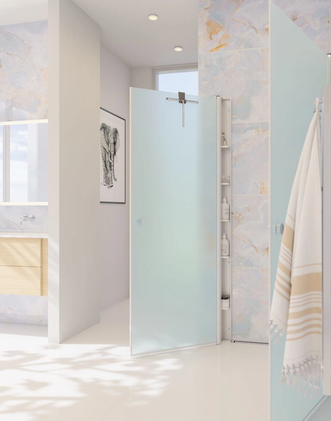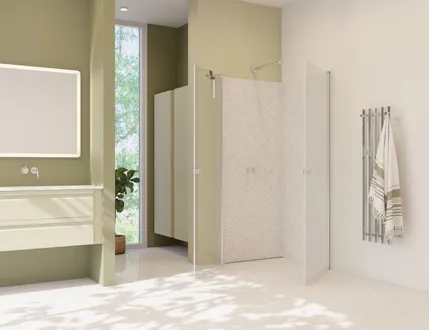 De draaideuren brengen zowel elegantie als functionaliteit in je badkamer. De deuren zijn uiterst praktisch en gebruiksvriendelijk, want ze kunnen zowel naar binnen als naar buiten worden geopend. Zo maak je ruimte vrij in je badkamer als de douche niet in gebruik is. De draaideuren openen en sluiten gemakkelijk en geruisloos op duurzame scharnieren met liftsysteem en zorgen voor een probleemloze toegang tot de douche. Tegelijkertijd vormen ze een effectief scherm om water binnen de doucheruimte te houden en de rest van de badkamer droog en schoon te houden. Het geharde glas in de deuren is behandeld met EasyCare, voor jarenlange eenvoudige reiniging.