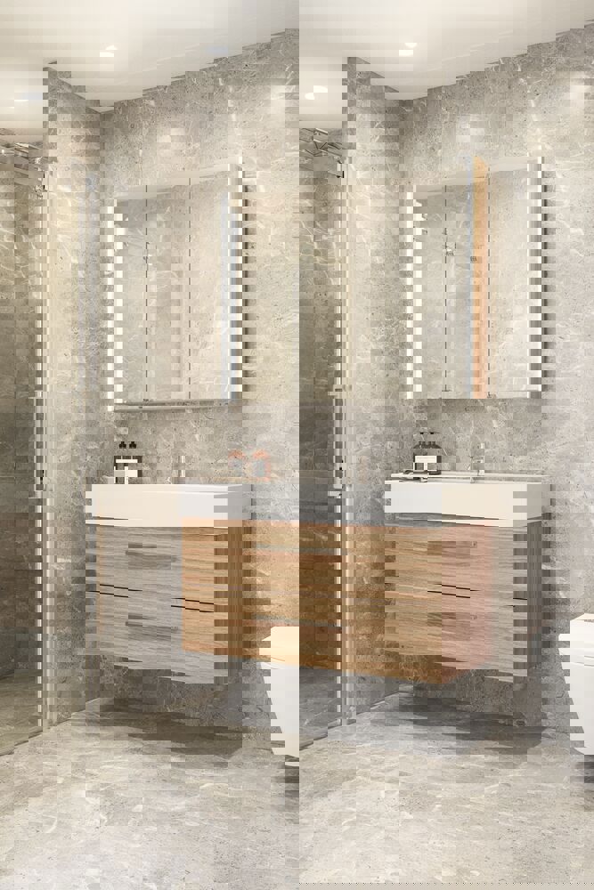 Ervaar zowel mooi design als functionaliteit met de Ambi spiegelkast. De spiegelkast biedt veel extra opbergruimte en wordt geleverd met een vergrootspiegel, metalen planchet en magneetstrip. Binnenin vind je ook een handig stopcontact en twee USB-poorten die je kunt gebruiken voor je scheerapparaat, föhn of wanneer je je elektrische tandenborstel moet opladen. De Ambi spiegelkast is natuurlijk verkrijgbaar in kleuren, zodat je een spiegelkast krijgt die bij je badkamermeubels past. Let op: er geldt een opstarttarief (BI1) voor producten met wenskleur. Deze wordt eenmalig betaald per wenskleur, ongeacht het aantal producten.