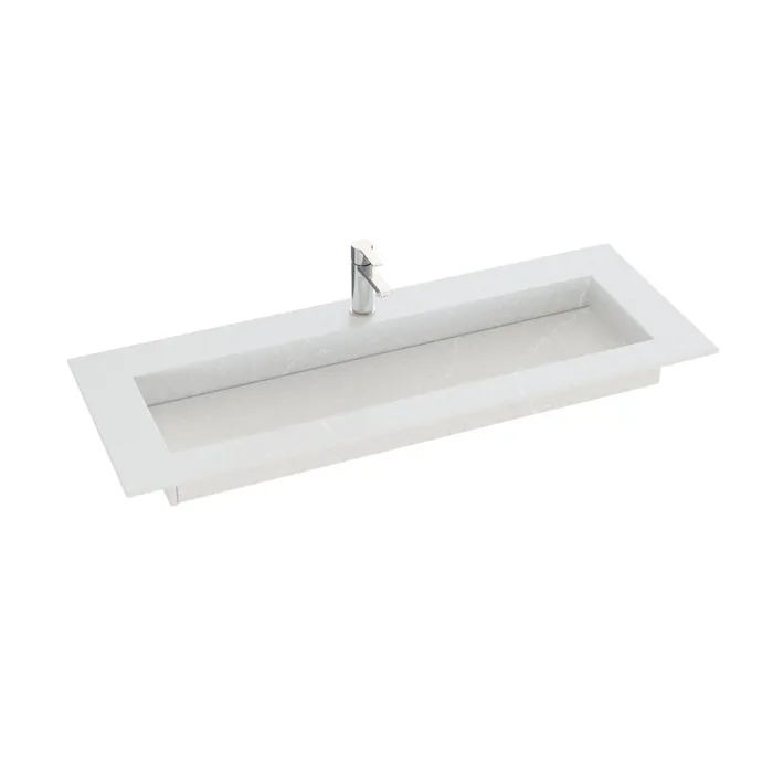 Met de Angular wastafel krijg je niet alleen een elegant en hoekig design, maar ook de mogelijkheid om een wastafel te krijgen die perfect bij je badkamer past. De wastafel kan op maat worden gemaakt, wat betekent dat deze precies kan worden aangepast aan je behoeften en de afmetingen van de ruimte. Deze flexibiliteit maakt de Angular wastafel de ideale keuze wanneer je een wastafel wilt die zowel functioneel is als zich naadloos integreert in het ontwerp van je badkamer. De wastafel is ontwikkeld in samenwerking met Cosentino en is beschikbaar in zowel de klassieke Silestone afwerkingen als de nieuwe, duurzame Trilium afwerking in Dekton. Trilium valt op door zijn ruwe, tegelachtige uitstraling en is gemaakt van tot 80% gerecycled materiaal, wat de wastafel een extra milieuvriendelijk tintje geeft. De elegante ontwerpfilosofie omvat een schuin bassin dat het water efficiënt naar een verborgen afvoer leidt, wat resulteert in een zowel stijlvolle als praktische design. De Silestone en Dekton materialen zijn niet alleen mooi, maar ook duurzaam, aangezien ze worden geproduceerd met hernieuwbare energie en 99% van het water in de productie wordt gerecycled.