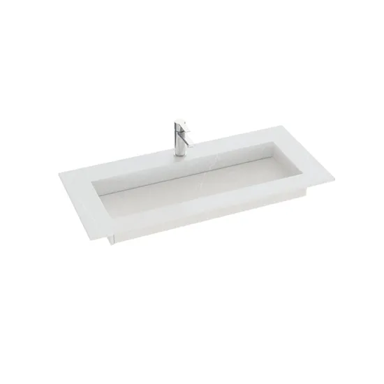 De Angular wastafel is de perfecte keuze voor moderne badkamers, met zijn minimalistische uitstraling en scherpe, hoekige design. De wastafel is ontwikkeld in nauwe samenwerking met Cosentino en is beschikbaar in de populaire Silestone afwerkingen, evenals de duurzame Dekton afwerking, Trilium. Trilium staat bekend om zijn ruwe, industriële uiterlijk en is gemaakt van tot 80% gerecycled materiaal, waardoor het een milieuvriendelijke keuze is, zowel esthetisch als ecologisch. De wastafel is gemaakt van plaatmaterialen die aan elkaar zijn verlijmd om een elegant en functioneel bassin te creëren. De bodem van het bassin is schuin aflopend om het water efficiënt naar de smalle, verborgen afvoer te leiden die zich over de breedte van de wastafel uitstrekt, wat zorgt voor een strakke en functionele uitstraling. De Angular wastafel is een ideale oplossing voor degenen die zowel een mooi als duurzaam element in hun badkamer willen, waar design en functionaliteit hand in hand gaan.