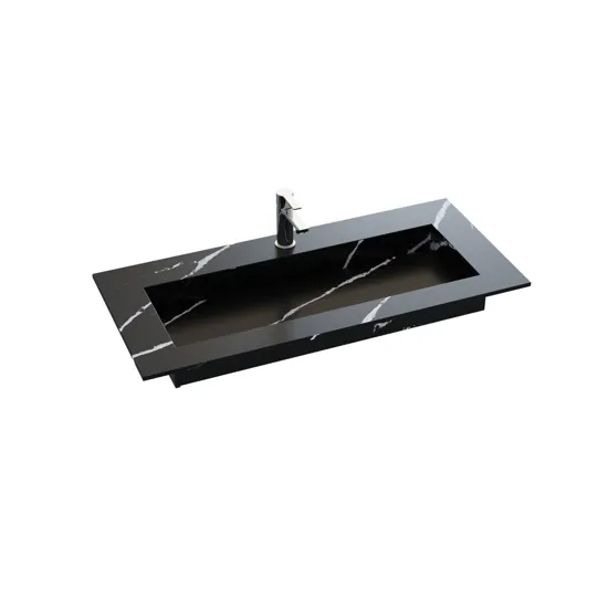 De Angular wastafel is de perfecte keuze voor moderne badkamers, met zijn minimalistische uitstraling en scherpe, hoekige design. De wastafel is ontwikkeld in nauwe samenwerking met Cosentino en is beschikbaar in de populaire Silestone afwerkingen, evenals de duurzame Dekton afwerking, Trilium. Trilium staat bekend om zijn ruwe, industriële uiterlijk en is gemaakt van tot 80% gerecycled materiaal, waardoor het een milieuvriendelijke keuze is, zowel esthetisch als ecologisch. De wastafel is gemaakt van plaatmaterialen die aan elkaar zijn verlijmd om een elegant en functioneel bassin te creëren. De bodem van het bassin is schuin aflopend om het water efficiënt naar de smalle, verborgen afvoer te leiden die zich over de breedte van de wastafel uitstrekt, wat zorgt voor een strakke en functionele uitstraling. De Angular wastafel is een ideale oplossing voor degenen die zowel een mooi als duurzaam element in hun badkamer willen, waar design en functionaliteit hand in hand gaan.