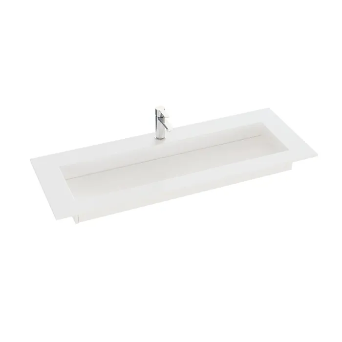 De Angular wastafel is de perfecte keuze voor moderne badkamers, met zijn minimalistische uitstraling en scherpe, hoekige design. De wastafel is ontwikkeld in nauwe samenwerking met Cosentino en is beschikbaar in de populaire Silestone afwerkingen, evenals de duurzame Dekton afwerking, Trilium. Trilium staat bekend om zijn ruwe, industriële uiterlijk en is gemaakt van tot 80% gerecycled materiaal, waardoor het een milieuvriendelijke keuze is, zowel esthetisch als ecologisch. De wastafel is gemaakt van plaatmaterialen die aan elkaar zijn verlijmd om een elegant en functioneel bassin te creëren. De bodem van het bassin is schuin aflopend om het water efficiënt naar de smalle, verborgen afvoer te leiden die zich over de breedte van de wastafel uitstrekt, wat zorgt voor een strakke en functionele uitstraling. De Angular wastafel is een ideale oplossing voor degenen die zowel een mooi als duurzaam element in hun badkamer willen, waar design en functionaliteit hand in hand gaan.