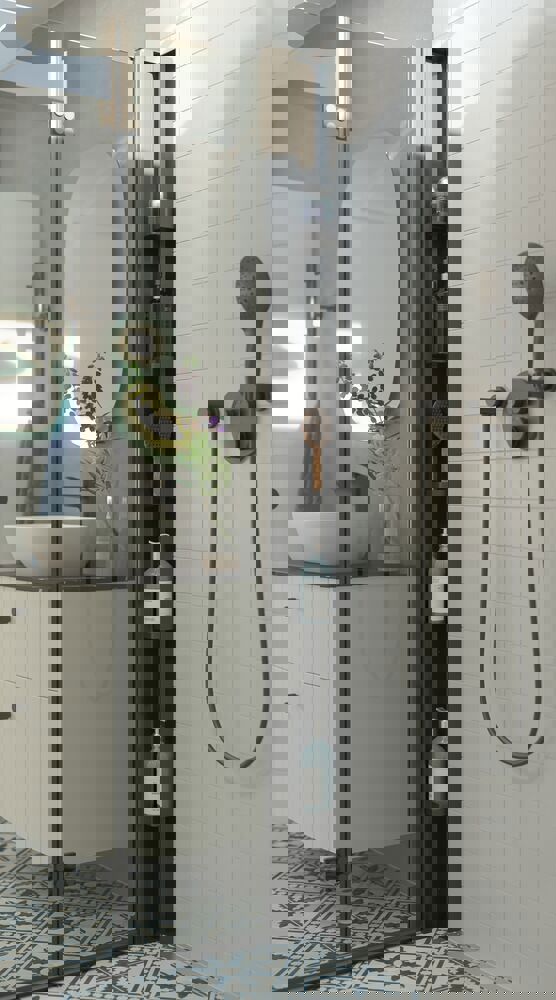 De vouwdeuren kunnen eenvoudig worden ingeklapt als de douchewand niet in gebruik is, waardoor er ruimte vrijkomt in de badkamer. De vouwdeuren zijn gemaakt van hoogwaardige materialen, waaronder gehard veiligheidsglas en stevige aluminium frames, die duurzaamheid en stabiliteit op lange termijn garanderen. Ze zijn eenvoudig te bedienen met soepele en betrouwbare scharnieren die ervoor zorgen dat de deuren naadloos openen en sluiten. Door te kiezen voor opvouwbare douchedeuren kun je de ruimte in je badkamer maximaliseren en een functionele en luchtige doucheruimte creëren.
