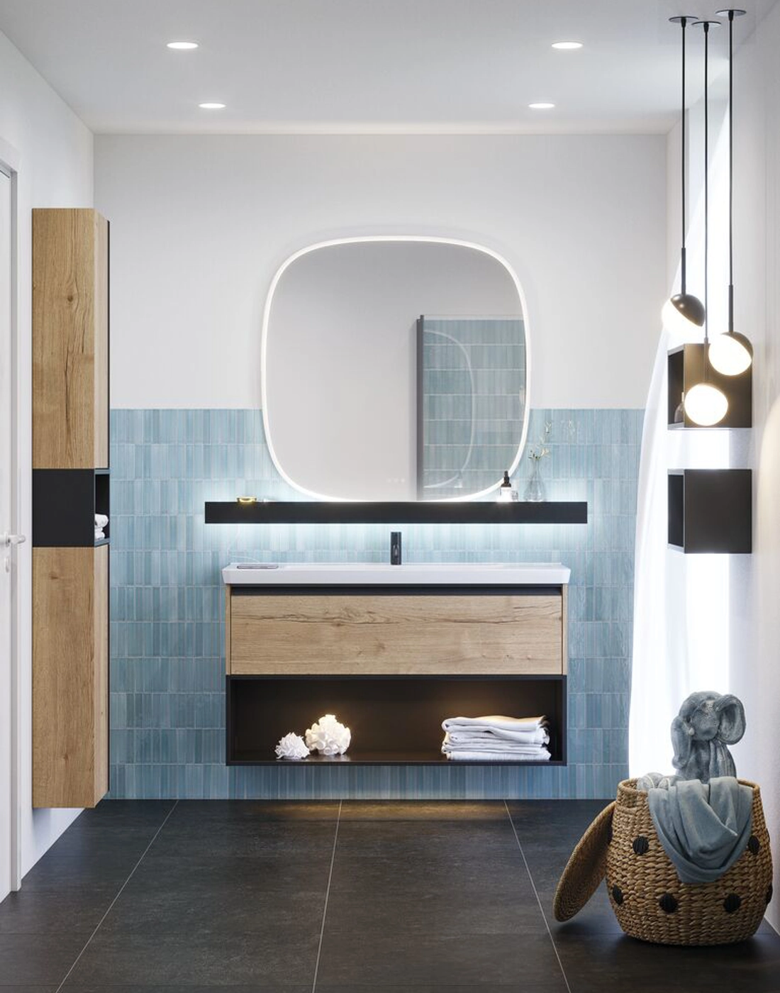 Geef uw badkamer een moderne uitstraling met een bovenkast met een geïntegreerde handgreep. Het eenvoudige maar stijlvolle ontwerp van deze kast maakt het een ideale oplossing voor het optimaliseren van de ruimte. De twee glazen planken bieden de mogelijkheid om uw badkamerartikelen te tonen en georganiseerd te houden. Met dit bovenkast krijgt u niet alleen praktische opbergruimte, maar ook een mooi detail dat kan worden gecombineerd met een open plank, waardoor zowel functionaliteit als esthetiek aan uw badkamer wordt toegevoegd. Let op: er geldt een opstarttarief (BI1) voor producten met wenskleur. Deze wordt eenmalig betaald per wenskleur, ongeacht het aantal producten. Vergeet niet de kleine praktische dingen aan je badkamermeubels toe te voegen waar je dagelijks plezier van hebt. Bijvoorbeeld verlichting in lades en kastjes, ingebouwde stopcontacten en gedimde sensorlampjes onder de meubels om nachtelijke bezoeken aan de badkamer te begeleiden. Opties worden tegelijk met je meubels bested.