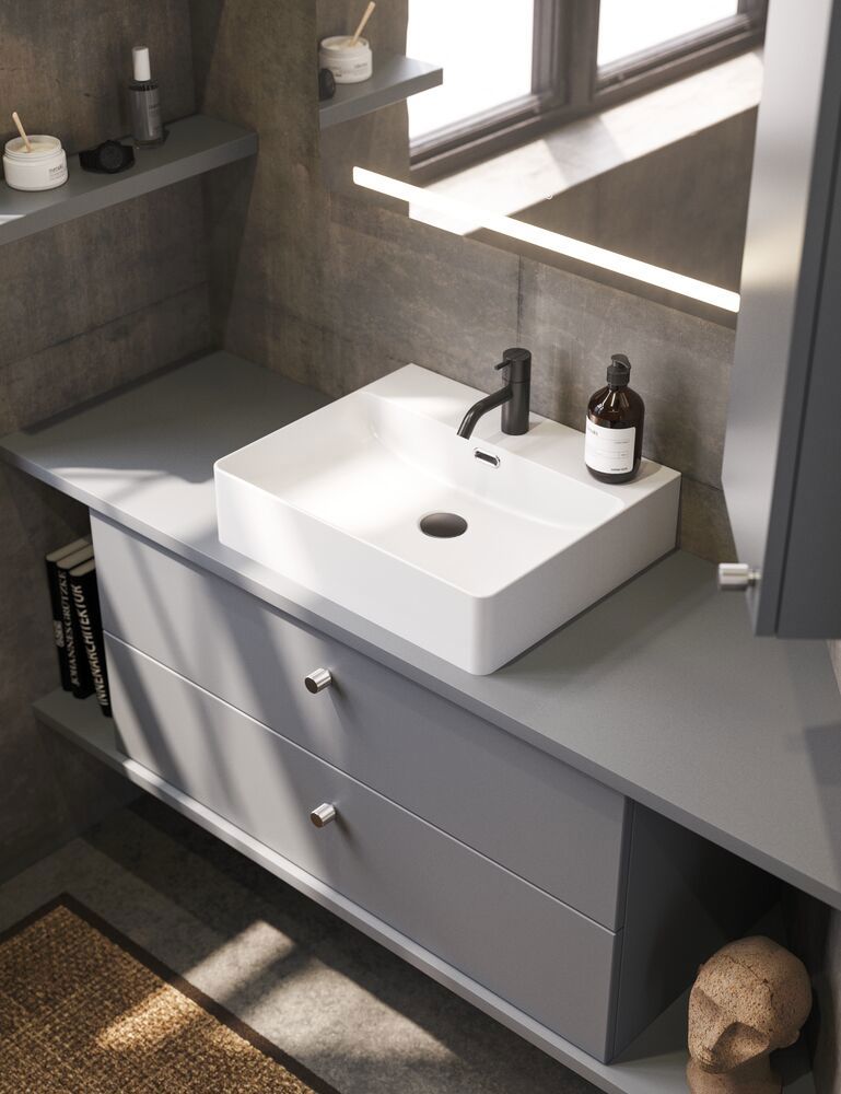 Maak ruimte vrij en organiseer je badkamer met onze bovenkasten. Deze ondiepe kast is verkrijgbaar met 2 glazen planchets en is zowel stijlvol als functioneel. Gebruik de kast om je crèmes, deodorants, enz. georganiseerd in de badkamer op te bergen. De kast is verkrijgbaar in verschillende kleuren om bij de rest van je badkamer te passen. Let op: er geldt een opstarttarief (BI1) voor producten met wenskleur. Deze wordt eenmalig betaald per wenskleur, ongeacht het aantal producten. Vergeet niet de kleine praktische dingen aan je badkamermeubels toe te voegen waar je dagelijks plezier van hebt. Bijvoorbeeld verlichting in lades en kastjes, ingebouwde stopcontacten en gedimde sensorlampjes onder de meubels om nachtelijke bezoeken aan de badkamer te begeleiden. Opties worden tegelijk met je meubels bested.