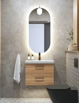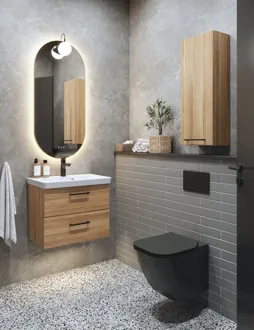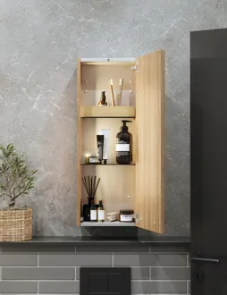 Maak ruimte vrij en organiseer je badkamer met onze bovenkasten. Deze ondiepe kast is verkrijgbaar met 2 glazen planchets en is zowel stijlvol als functioneel. Gebruik de kast om je crèmes, deodorants, enz. georganiseerd in de badkamer op te bergen. De kast is verkrijgbaar in verschillende kleuren om bij de rest van je badkamer te passen. Let op: er geldt een opstarttarief (BI1) voor producten met wenskleur. Deze wordt eenmalig betaald per wenskleur, ongeacht het aantal producten. Vergeet niet de kleine praktische dingen aan je badkamermeubels toe te voegen waar je dagelijks plezier van hebt. Bijvoorbeeld verlichting in lades en kastjes, ingebouwde stopcontacten en gedimde sensorlampjes onder de meubels om nachtelijke bezoeken aan de badkamer te begeleiden. Opties worden tegelijk met je meubels bested.