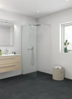De vaste wanden zijn ontworpen met de focus op het creëren van een ruime en stijlvolle doucheruimte die volledig kan worden aangepast aan jouw persoonlijke stijl en badkamerinrichting. Onze vaste wanden kunnen gecombineerd worden met andere douchewanden of douchedeuren, zodat je een oplossing kunt maken die perfect in jouw badkamer past. Misschien heb je veel ruimte en kun je een inloopdouche creëren? Of misschien wil je de vaste wand combineren met een draaideur voor een stabiele en veilige oplossing? Wat je ook kiest, je kunt de oplossing vinden die het beste bij je past. Het glas in de vaste wanden is behandeld met EasyCare, een speciale coating die water en zeepresten afstoot, waardoor schoonmaken veel eenvoudiger wordt. Het glas is gehard en de sterke constructie en solide materialen zorgen ervoor dat de wanden stabiel en veilig zijn.