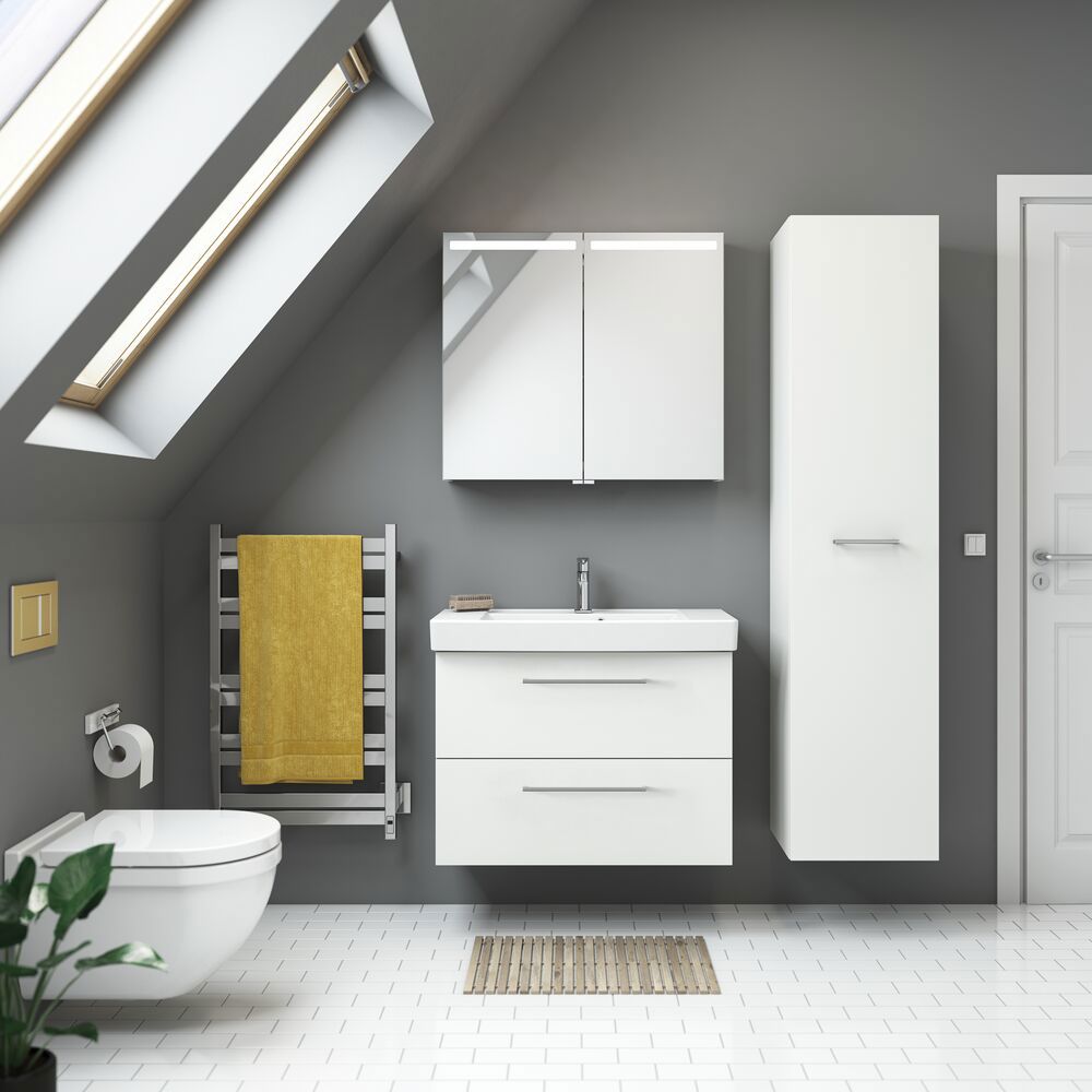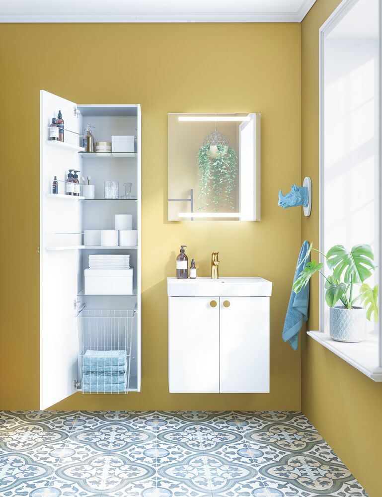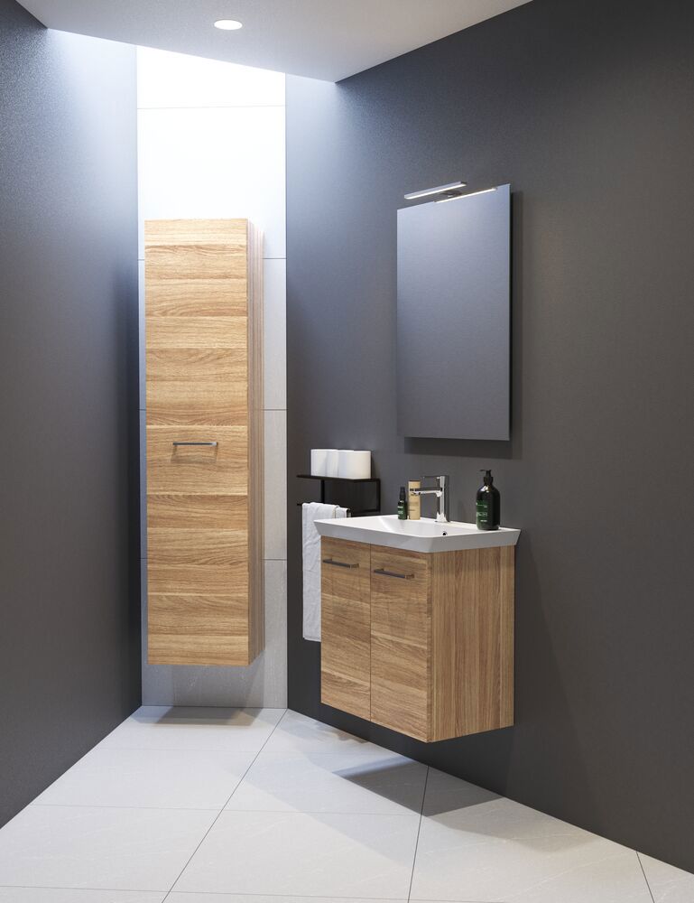 Maak gebruik van elke centimeter ruimte in je badkamer met de Dansani Mido+ hoge kast. In een hoge kast passen al je badkamerspullen, dus als je de ruimte hebt, raden we zeker een hoge kast aan voor je badkamer. In deze hoge kast vind je 1 houten legplank, 4 glazen legplanken en 3 opbergrekken in de deur zelf, waardoor je veel overzichtelijke ruimte hebt en je je badkamer optimaal kunt inrichten. Ervaar een nieuwe dimensie van orde en design in je badkamer met de Dansani Mido+ hoge kast.