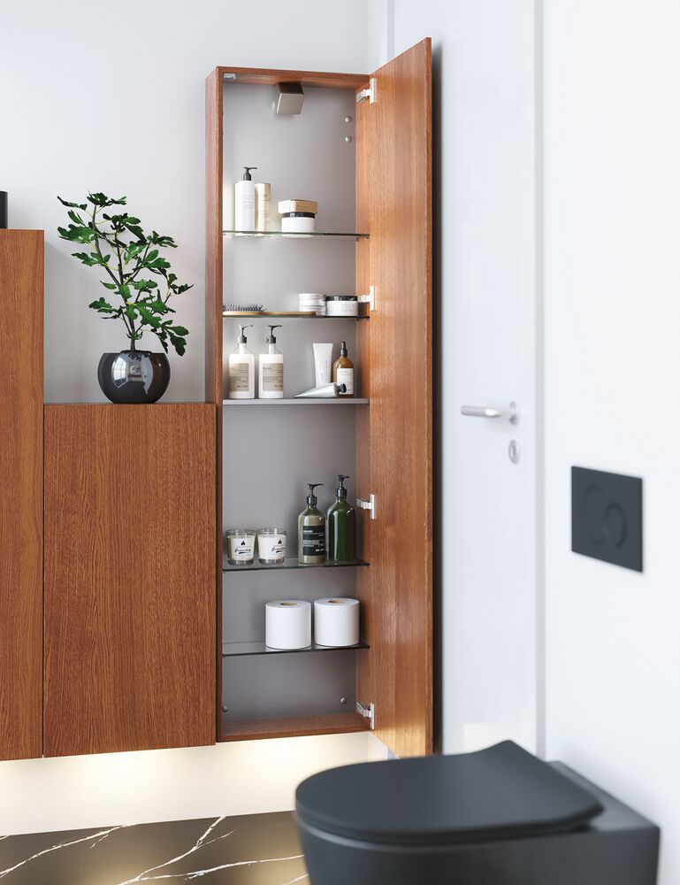 Heb je een badkamer met beperkte ruimte en heb je opbergruimte nodig? Dan is deze hoge kast van Dansani Calidris de oplossing voor jou. De hoge kast is slechts 16 cm diep, maar biedt toch voldoende ruimte om je badkameritems op te bergen en te organiseren. De hoge kast is een discrete maar functionele oplossing voor het opbergen van je badkamerspullen, waardoor je alles georganiseerd opbergt en ruimte vrijmaakt. Let op: er geldt een opstarttarief (BI1) per eiken en wenskleur. Deze wordt eenmalig betaald per eiken en wenskleur, ongeacht het aantal producten. Vergeet niet de kleine praktische dingen aan je badkamermeubels toe te voegen waar je dagelijks plezier van hebt. Bijvoorbeeld verlichting in lades en kastjes, ingebouwde stopcontacten en gedimde sensorlampjes onder de meubels om nachtelijke bezoeken aan de badkamer te begeleiden. Opties worden tegelijk met je meubels bested.