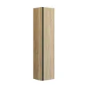 De hoge kast in versie B met geïntegreerde greep is perfect voor wie stijl en functionaliteit zoekt. Met één houten plank en drie verkorte glazen planken is deze kast ideaal voor het opbergen van verschillende badkamerartikelen. De drie houten bakken aan de deur zijn perfect voor kleine items, terwijl de twee glazen planken je favoriete producten laten zien. De elegante zwarte kleur van de greep creëert een mooi contrast en voegt een verfijnde touch toe aan je badkamer. Let op: er geldt een opstarttarief (BI1) voor producten met wenskleur. Deze wordt eenmalig betaald per wenskleur, ongeacht het aantal producten. Vergeet niet de kleine praktische dingen aan je badkamermeubels toe te voegen waar je dagelijks plezier van hebt. Bijvoorbeeld verlichting in lades en kastjes, ingebouwde stopcontacten en gedimde sensorlampjes onder de meubels om nachtelijke bezoeken aan de badkamer te begeleiden. Opties worden tegelijk met je meubels bested.
