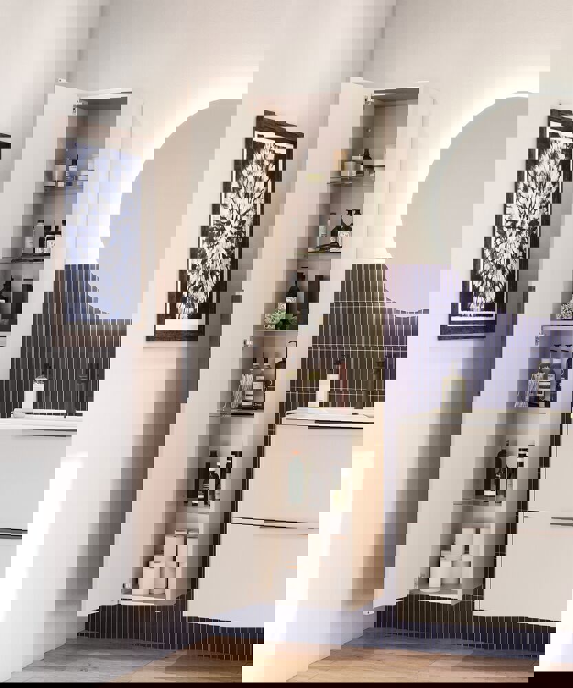 Deze hoge kast is ontworpen voor flexibiliteit en ruimte. Met een omkeerbare deur kun je de kast aanpassen aan je interieur, welke richting je ook verkiest. Binnenin vind je een stevige houten plank en 4 uitneembare glazen planken, waardoor je veel opbergmogelijkheden hebt. De kast is verkrijgbaar in wit, zand of lichtblauw en de handgreep is gemonteerd zodat de kast klaar is voor gebruik.
