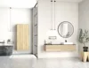 Voeg een uniek design toe aan je badkamer met de 60 cm brede hoge kast met geribbeld front in versie A. Deze ruime dubbeldeurs hoge kast heeft een houten legplank en vijf glazen legplanken, waardoor je genoeg opbergruimte hebt voor zowel grotere als kleinere badkameritems. De geribbelde voorkant voegt textuur en karakter toe aan de badkamer, terwijl de grootte van de kast voldoende ruimte biedt om al je spullen te organiseren. De hoge kast met geribbelde voorkant combineert functionaliteit en stijl, ideaal voor het creëren van een elegante badkameromgeving. Let op: er geldt een opstarttarief (BI1) voor producten met wenskleur. Deze wordt eenmalig betaald per wenskleur, ongeacht het aantal producten. Vergeet niet de kleine praktische dingen aan je badkamermeubels toe te voegen waar je dagelijks plezier van hebt. Bijvoorbeeld verlichting in lades en kastjes, ingebouwde stopcontacten en gedimde sensorlampjes onder de meubels om nachtelijke bezoeken aan de badkamer te begeleiden. Opties worden tegelijk met je meubels bested.