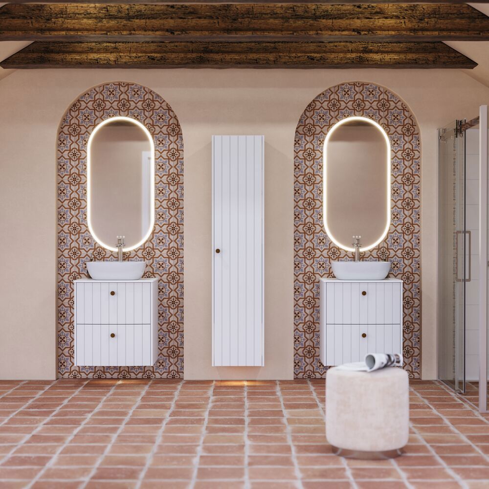 De ovale Hoop spiegel geeft een stijlvolle en moderne uitstraling met zijn unieke, zwevende frame. Het gebogen binnenframe leidt het licht gelijkmatig naar voren en creëert een zacht, diffuus licht dat een aangename verlichting biedt zonder te verblinden. De spiegel is voorzien van een lichtregeling, zodat je de helderheid eenvoudig kunt aanpassen aan je behoefte, of het nu voor make-up of een ontspannende sfeer is. De Hoop spiegel is standaard verkrijgbaar met een zwart frame, maar het is ook mogelijk om het buitenste frame in een speciale kleur te laten lakken die bij je badkamer past. Je kunt een gemonteerd spiegelverwarming voor de spiegel kopen om te voorkomen dat de spiegel beslaat tijdens het douchen. Let op: er geldt een opstarttarief (BI1) voor producten met wenskleur. Deze wordt eenmalig betaald per wenskleur, ongeacht het aantal producten.