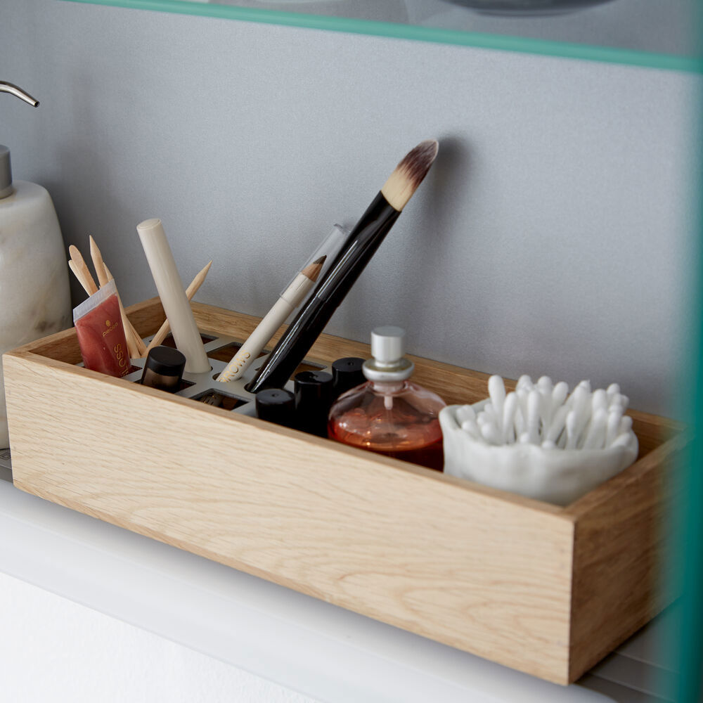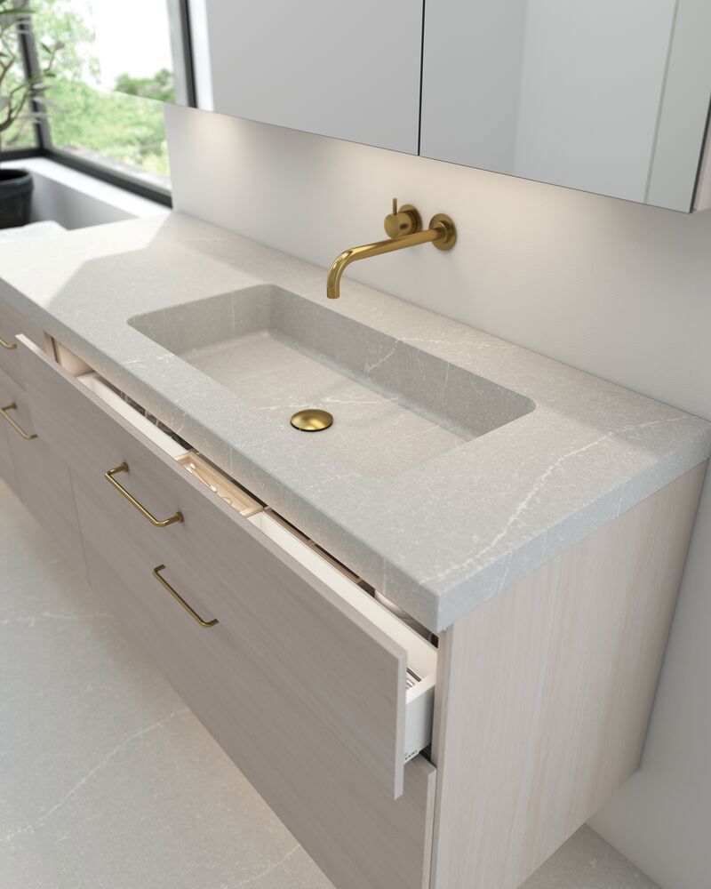 Dansani Calidris kasten zijn een slimme oplossing voor badkamers met beperkte ruimte. Met een smalle diepte van slechts 16 cm heb je meer dan genoeg opbergruimte, zelfs voor kleinere badkamers. Deze kasten combineren ruimtebesparend design met functionaliteit en stijl, waardoor ze ideaal zijn voor het organiseren van toiletartikelen, shampoo, crèmes en wat je verder nodig hebt in de badkamer. Ongeacht de grootte van de badkamer voegen de Dansani Calidris kasten een praktische en elegante opbergoplossing toe. Let op: er geldt een opstarttarief (BI1) per eiken en wenskleur. Deze wordt eenmalig betaald per eiken en wenskleur, ongeacht het aantal producten. Vergeet niet de kleine praktische dingen aan je badkamermeubels toe te voegen waar je dagelijks plezier van hebt. Bijvoorbeeld verlichting in lades en kastjes, ingebouwde stopcontacten en gedimde sensorlampjes onder de meubels om nachtelijke bezoeken aan de badkamer te begeleiden. Opties worden tegelijk met je meubels bested.