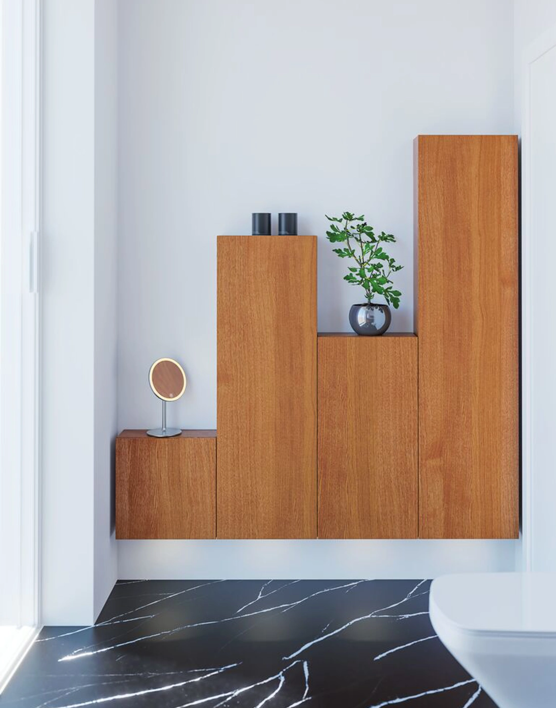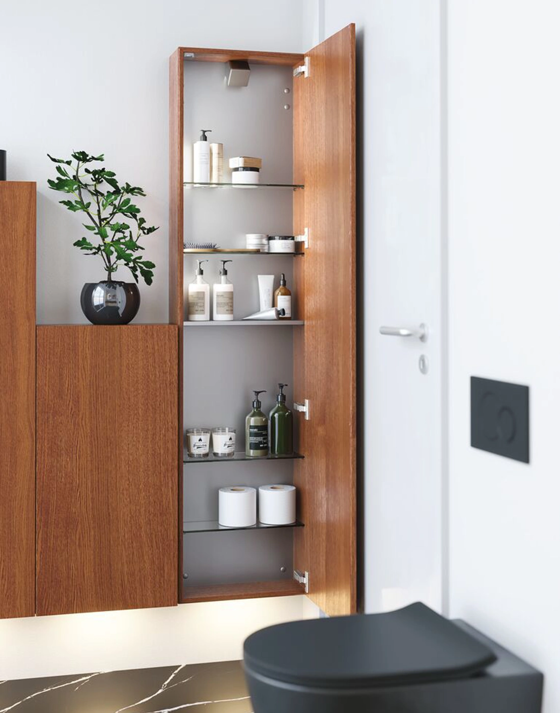 Dansani Calidris kasten zijn een slimme oplossing voor badkamers met beperkte ruimte. Met een smalle diepte van slechts 16 cm heb je meer dan genoeg opbergruimte, zelfs voor kleinere badkamers. Deze kasten combineren ruimtebesparend design met functionaliteit en stijl, waardoor ze ideaal zijn voor het organiseren van toiletartikelen, shampoo, crèmes en wat je verder nodig hebt in de badkamer. Ongeacht de grootte van de badkamer voegen de Dansani Calidris kasten een praktische en elegante opbergoplossing toe. Let op: er geldt een opstarttarief (BI1) per eiken en wenskleur. Deze wordt eenmalig betaald per eiken en wenskleur, ongeacht het aantal producten. Vergeet niet de kleine praktische dingen aan je badkamermeubels toe te voegen waar je dagelijks plezier van hebt. Bijvoorbeeld verlichting in lades en kastjes, ingebouwde stopcontacten en gedimde sensorlampjes onder de meubels om nachtelijke bezoeken aan de badkamer te begeleiden. Opties worden tegelijk met je meubels bested.
