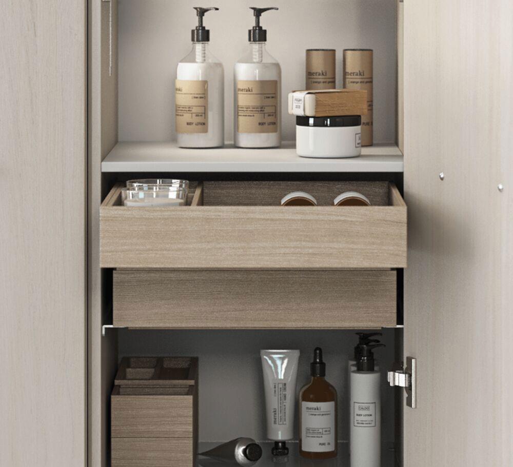 De Dansani Calidris kast met deur biedt eenvoudige en stijlvolle opbergoplossingen voor je badkamer. Met een strak en tijdloos ontwerp biedt de deur toegang tot een ruime opbergruimte voor toiletartikelen, handdoeken en andere badkamerbenodigdheden. Het design en functionaliteit van de kast maken het een ideale aanvulling op elk badkamerinterieur. Combineer de kast met andere Dansani Calidris kasten voor een unieke badkamer die bij je past. Let op: er geldt een opstarttarief (BI1) per eiken en wenskleur. Deze wordt eenmalig betaald per eiken en wenskleur, ongeacht het aantal producten. Vergeet niet de kleine praktische dingen aan je badkamermeubels toe te voegen waar je dagelijks plezier van hebt. Bijvoorbeeld verlichting in lades en kastjes, ingebouwde stopcontacten en gedimde sensorlampjes onder de meubels om nachtelijke bezoeken aan de badkamer te begeleiden. Opties worden tegelijk met je meubels bested.
