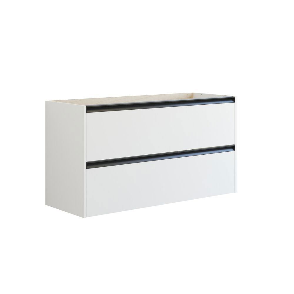 Optimaliseer uw badkamerinrichting met een onderkast met een geïntegreerde handgreep en twee lades. De slimme lades bieden gemakkelijke toegang tot uw spullen, terwijl het strakke ontwerp een moderne uitstraling creëert. De harmonieuze kleur zorgt ervoor dat de kast perfect in uw badkamer past. Of het nu alleen staat met een blad of als onderdeel van een totale oplossing met een wastafelonderkast, deze kast zal zowel functionaliteit als elegantie aan de ruimte toevoegen. Let op: er geldt een opstarttarief (BI1) voor producten met wenskleur. Deze wordt eenmalig betaald per wenskleur, ongeacht het aantal producten. Vergeet niet de kleine praktische dingen aan je badkamermeubels toe te voegen waar je dagelijks plezier van hebt. Bijvoorbeeld verlichting in lades en kastjes, ingebouwde stopcontacten en gedimde sensorlampjes onder de meubels om nachtelijke bezoeken aan de badkamer te begeleiden. Opties worden tegelijk met je meubels bested.