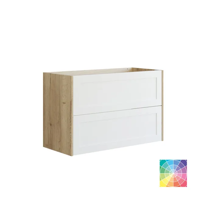 Geef je badkamer een elegant tintje met een badmeubel met een klassiek frame en twee lades. Het frame voegt een moderne en stijlvolle look toe die bij elke inrichting past. De twee lades van het meubel bieden veel opbergruimte, zodat je je badkamerbenodigdheden bij de hand kunt houden. Of je hem nu gebruikt met een werkblad erop of in combinatie met een badmeubel, dit meubel draagt bij aan een georganiseerde en stijlvolle sfeer in je badkamer. Let op: er geldt een opstarttarief (BI1) voor producten met wenskleur. Deze wordt eenmalig betaald per wenskleur, ongeacht het aantal producten. Vergeet niet de kleine praktische dingen aan je badkamermeubels toe te voegen waar je dagelijks plezier van hebt. Bijvoorbeeld verlichting in lades en kastjes, ingebouwde stopcontacten en gedimde sensorlampjes onder de meubels om nachtelijke bezoeken aan de badkamer te begeleiden. Opties worden tegelijk met je meubels bested.