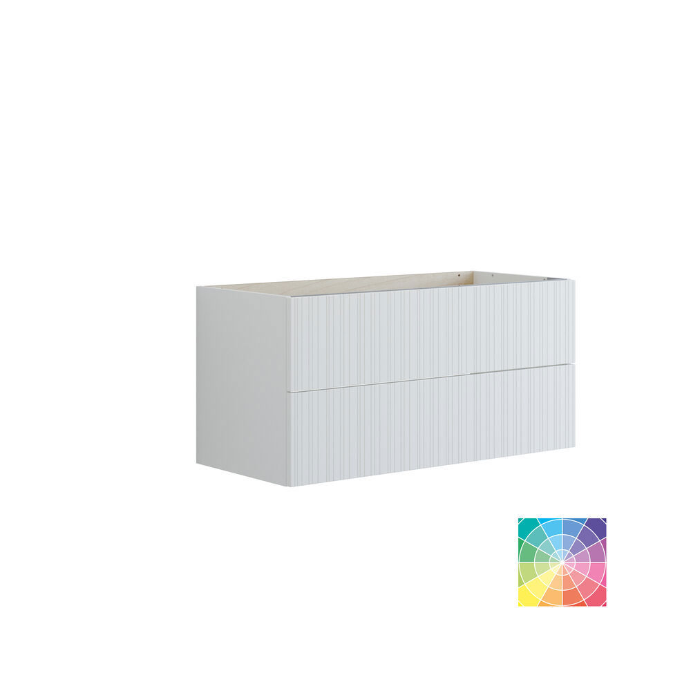 Verfris uw badkamer met de onderkast zonder afvoeruitsparing, die 2 functionele lades biedt. Deze onderkasten zijn 48 cm hoog en hebben en elegante waterfall front, die een unieke en stijlvolle uitstraling geeft. Perfect voor moderne badkamers, kunnen ze eenvoudig worden gecombineerd met een wastafel en een werkblad met een vrijstaande wastafel. Het waterfall front voegt karakter en diepte toe aan uw badkamer, terwijl u voldoende opbergruimte krijgt voor uw badkamerartikelen. Met deze onderkast krijgt u zowel functionaliteit als esthetiek in één oplossing. Let op: er geldt een opstarttarief (BI1) voor producten met wenskleur. Deze wordt eenmalig betaald per wenskleur, ongeacht het aantal producten. Vergeet niet de kleine praktische dingen aan je badkamermeubels toe te voegen waar je dagelijks plezier van hebt. Bijvoorbeeld verlichting in lades en kastjes, ingebouwde stopcontacten en gedimde sensorlampjes onder de meubels om nachtelijke bezoeken aan de badkamer te begeleiden. Opties worden tegelijk met je meubels bested.