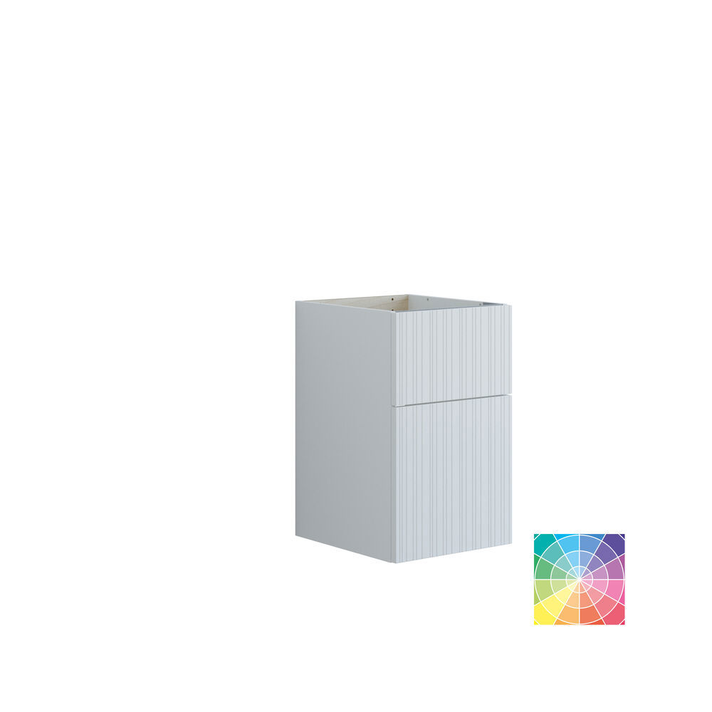 Creëer een stijlvolle badkamer met onderkasten die 2 lades hebben en een hoogte van 64 cm. De hoge bodemlade biedt je voldoende ruimte voor het opbergen van je badkamerartikelen, terwijl de waterfall front een moderne en unieke detail aan het ontwerp toevoegt. Deze onderkasten kunnen zelfstandig worden gebruikt of worden gecombineerd met een wastafelmeubel en een blad met een opbouw wastafel voor een spannende asymmetrische oplossing. Je hebt de mogelijkheid om uit verschillende kleuren te kiezen, zodat je de onderkasten kunt aanpassen aan je persoonlijke stijl. Onderkasten met 2 lades bieden zowel functionaliteit als een esthetische uitstraling, waardoor je badkamer eleganter en georganiseerder wordt. Let op: er geldt een opstarttarief (BI1) voor producten met wenskleur. Deze wordt eenmalig betaald per wenskleur, ongeacht het aantal producten. Vergeet niet de kleine praktische dingen aan je badkamermeubels toe te voegen waar je dagelijks plezier van hebt. Bijvoorbeeld verlichting in lades en kastjes, ingebouwde stopcontacten en gedimde sensorlampjes onder de meubels om nachtelijke bezoeken aan de badkamer te begeleiden. Opties worden tegelijk met je meubels bested.