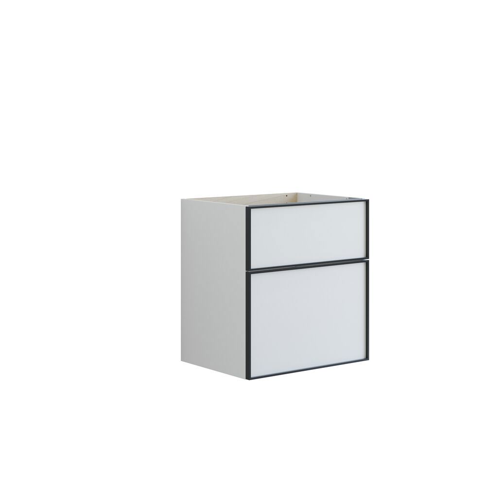 Onderkasten met 2 lades hebben een hoogte van 64 cm en een hoge bodemlade die genereuze opbergruimte biedt voor al je badkamerartikelen. Het stijlvolle zwarte kader voegt een modern en verfijnd accent toe aan de onderkasten. Ze kunnen alleen worden gebruikt of in combinatie met een wastafelmeubel en een blad met een opbouw wastafel voor een interessante asymmetrische uitstraling. Kies uit verschillende kleuren om de onderkast te vinden die het beste bij je badkamer past. Onderkasten met 2 lades combineren zowel esthetiek als functionaliteit, waardoor je badkamer georganiseerder en stijlvoller wordt. Let op: er geldt een opstarttarief (BI1) voor producten met wenskleur. Deze wordt eenmalig betaald per wenskleur, ongeacht het aantal producten. Vergeet niet de kleine praktische dingen aan je badkamermeubels toe te voegen waar je dagelijks plezier van hebt. Bijvoorbeeld verlichting in lades en kastjes, ingebouwde stopcontacten en gedimde sensorlampjes onder de meubels om nachtelijke bezoeken aan de badkamer te begeleiden. Opties worden tegelijk met je meubels bested.