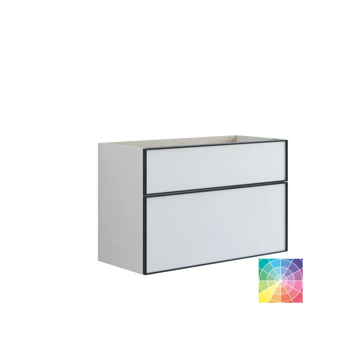 Onderkasten met 2 lades hebben een hoogte van 64 cm en een hoge bodemlade die genereuze opbergruimte biedt voor al je badkamerartikelen. Het stijlvolle zwarte kader voegt een modern en verfijnd accent toe aan de onderkasten. Ze kunnen alleen worden gebruikt of in combinatie met een wastafelmeubel en een blad met een opbouw wastafel voor een interessante asymmetrische uitstraling. Kies uit verschillende kleuren om de onderkast te vinden die het beste bij je badkamer past. Onderkasten met 2 lades combineren zowel esthetiek als functionaliteit, waardoor je badkamer georganiseerder en stijlvoller wordt. Let op: er geldt een opstarttarief (BI1) voor producten met wenskleur. Deze wordt eenmalig betaald per wenskleur, ongeacht het aantal producten. Vergeet niet de kleine praktische dingen aan je badkamermeubels toe te voegen waar je dagelijks plezier van hebt. Bijvoorbeeld verlichting in lades en kastjes, ingebouwde stopcontacten en gedimde sensorlampjes onder de meubels om nachtelijke bezoeken aan de badkamer te begeleiden. Opties worden tegelijk met je meubels bested.