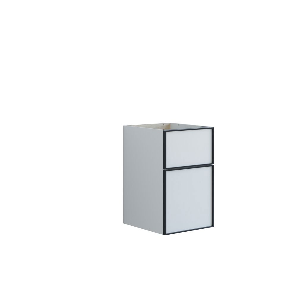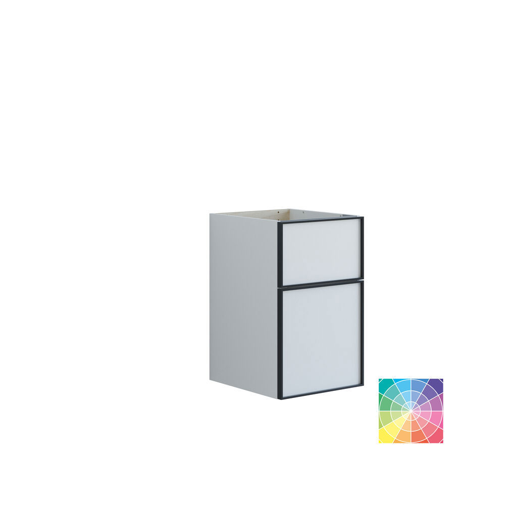 Onderkasten met 2 lades hebben een hoogte van 64 cm en een hoge bodemlade die genereuze opbergruimte biedt voor al je badkamerartikelen. Het stijlvolle zwarte kader voegt een modern en verfijnd accent toe aan de onderkasten. Ze kunnen alleen worden gebruikt of in combinatie met een wastafelmeubel en een blad met een opbouw wastafel voor een interessante asymmetrische uitstraling. Kies uit verschillende kleuren om de onderkast te vinden die het beste bij je badkamer past. Onderkasten met 2 lades combineren zowel esthetiek als functionaliteit, waardoor je badkamer georganiseerder en stijlvoller wordt. Let op: er geldt een opstarttarief (BI1) voor producten met wenskleur. Deze wordt eenmalig betaald per wenskleur, ongeacht het aantal producten. Vergeet niet de kleine praktische dingen aan je badkamermeubels toe te voegen waar je dagelijks plezier van hebt. Bijvoorbeeld verlichting in lades en kastjes, ingebouwde stopcontacten en gedimde sensorlampjes onder de meubels om nachtelijke bezoeken aan de badkamer te begeleiden. Opties worden tegelijk met je meubels bested.