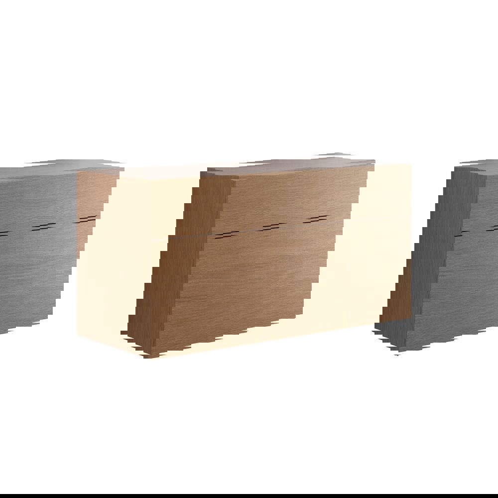 Dansani Calidris kastjes met 2 lades zijn de perfecte oplossing voor wie op zoek is naar slimme en stijlvolle opbergruimte in de badkamer. Met Calidris krijg je doordacht Deens design, en deze kasten zijn ontworpen om ruimte te maximaliseren zonder afbreuk te doen aan functionaliteit of design. In de twee ruime lades kun je gemakkelijk je toiletartikelen, handdoeken en badkamerbenodigdheden organiseren en netjes opbergen. Het ontwerp van de kasten is eenvoudig en tijdloos, waardoor ze een stijlvolle toevoeging zijn aan elke badkamer. Let op: er geldt een opstarttarief (BI1) per eiken en wenskleur. Deze wordt eenmalig betaald per eiken en wenskleur, ongeacht het aantal producten. Vergeet niet de kleine praktische dingen aan je badkamermeubels toe te voegen waar je dagelijks plezier van hebt. Bijvoorbeeld verlichting in lades en kastjes, ingebouwde stopcontacten en gedimde sensorlampjes onder de meubels om nachtelijke bezoeken aan de badkamer te begeleiden. Opties worden tegelijk met je meubels bested.
