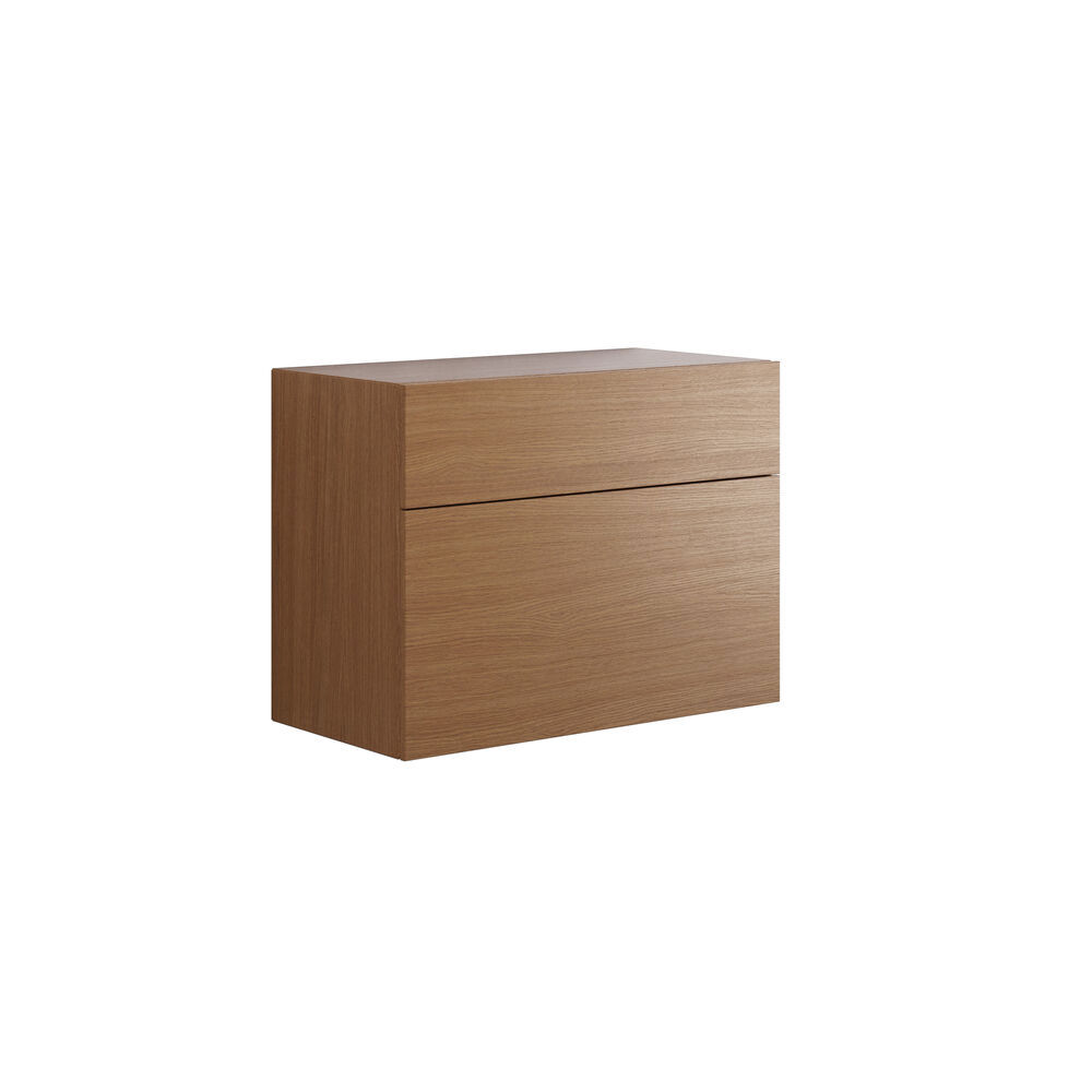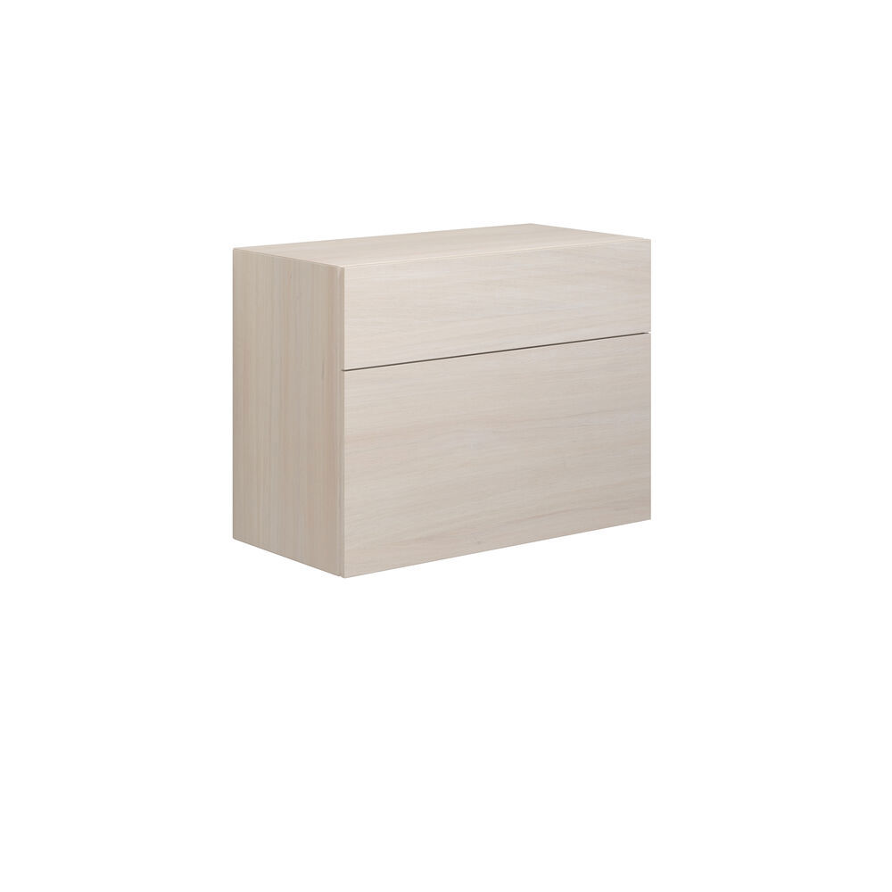Dansani Calidris kastjes met 2 lades zijn de perfecte oplossing voor wie op zoek is naar slimme en stijlvolle opbergruimte in de badkamer. Met Calidris krijg je doordacht Deens design, en deze kasten zijn ontworpen om ruimte te maximaliseren zonder afbreuk te doen aan functionaliteit of design. In de twee ruime lades kun je gemakkelijk je toiletartikelen, handdoeken en badkamerbenodigdheden organiseren en netjes opbergen. Het ontwerp van de kasten is eenvoudig en tijdloos, waardoor ze een stijlvolle toevoeging zijn aan elke badkamer. Let op: er geldt een opstarttarief (BI1) per eiken en wenskleur. Deze wordt eenmalig betaald per eiken en wenskleur, ongeacht het aantal producten. Vergeet niet de kleine praktische dingen aan je badkamermeubels toe te voegen waar je dagelijks plezier van hebt. Bijvoorbeeld verlichting in lades en kastjes, ingebouwde stopcontacten en gedimde sensorlampjes onder de meubels om nachtelijke bezoeken aan de badkamer te begeleiden. Opties worden tegelijk met je meubels bested.