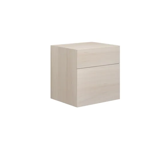 Dansani Calidris kastjes met 2 lades zijn de perfecte oplossing voor wie op zoek is naar slimme en stijlvolle opbergruimte in de badkamer. Met Calidris krijg je doordacht Deens design, en deze kasten zijn ontworpen om ruimte te maximaliseren zonder afbreuk te doen aan functionaliteit of design. In de twee ruime lades kun je gemakkelijk je toiletartikelen, handdoeken en badkamerbenodigdheden organiseren en netjes opbergen. Het ontwerp van de kasten is eenvoudig en tijdloos, waardoor ze een stijlvolle toevoeging zijn aan elke badkamer. Let op: er geldt een opstarttarief (BI1) per eiken en wenskleur. Deze wordt eenmalig betaald per eiken en wenskleur, ongeacht het aantal producten. Vergeet niet de kleine praktische dingen aan je badkamermeubels toe te voegen waar je dagelijks plezier van hebt. Bijvoorbeeld verlichting in lades en kastjes, ingebouwde stopcontacten en gedimde sensorlampjes onder de meubels om nachtelijke bezoeken aan de badkamer te begeleiden. Opties worden tegelijk met je meubels bested.